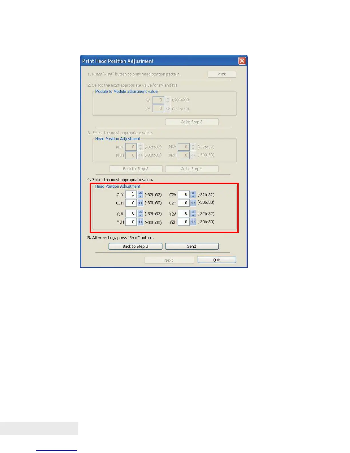 7) Enter the adjustment values in the Head Position Adjustment value entry