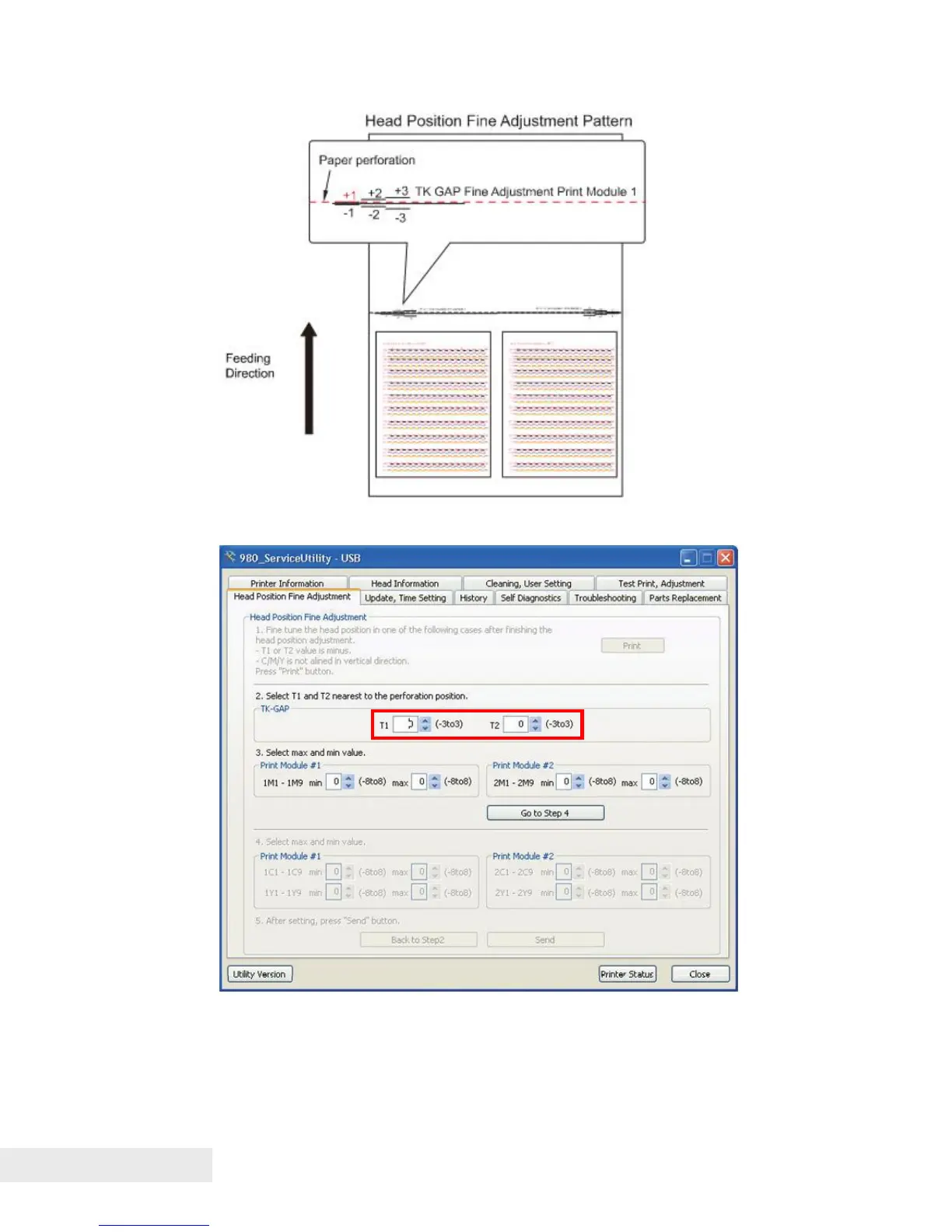 2) Enter the adjustment values in the TK-GAP adjustment value entry boxes.