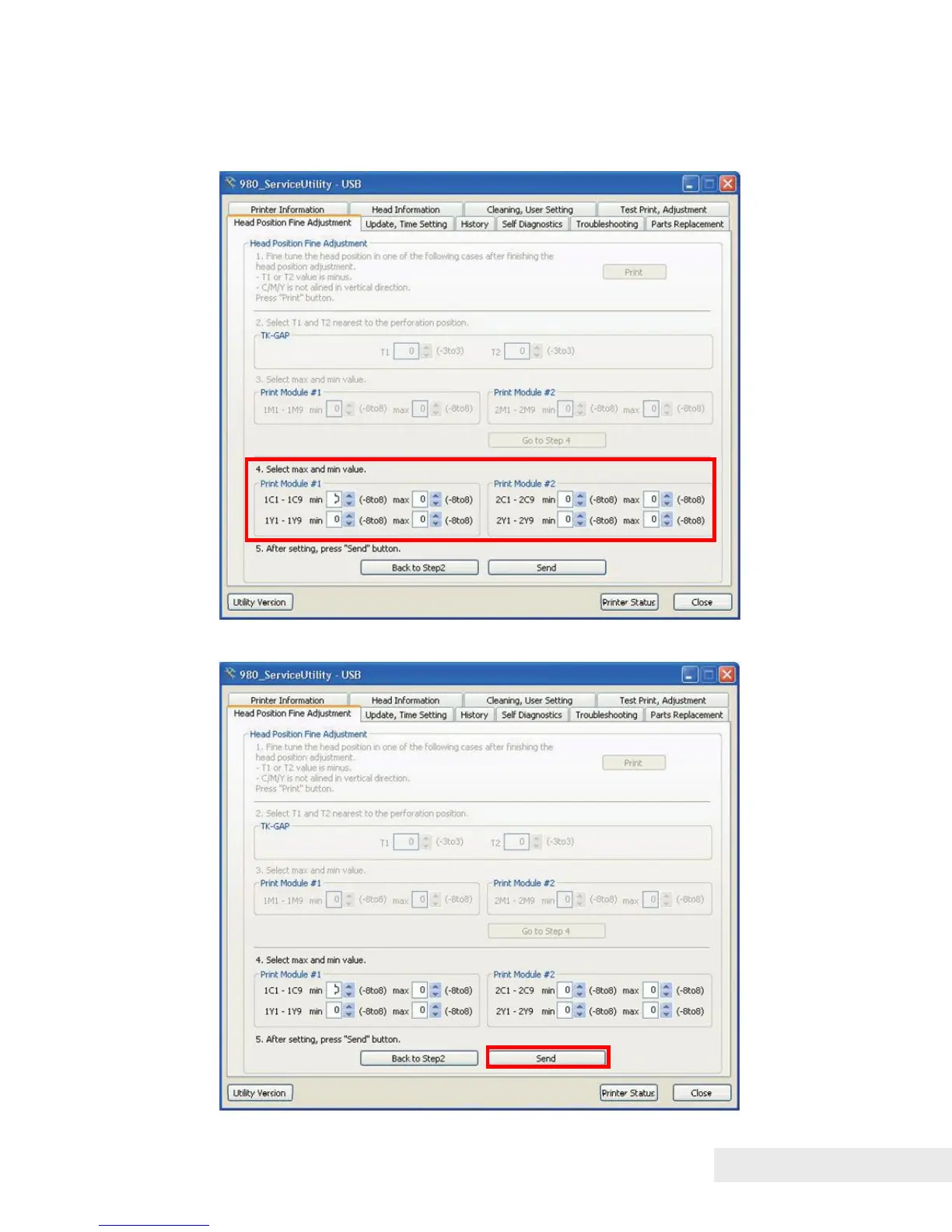 each Print Module 1 and Print Module 2, and then enter the numerical values