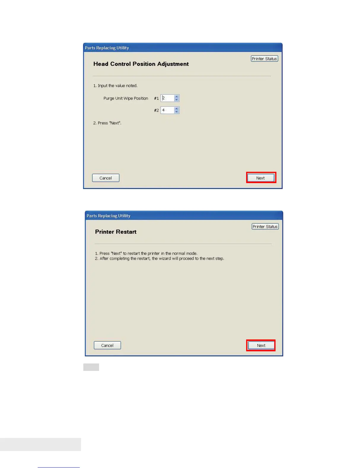 10) Click [Next] to restart Printer in normal mode, and then ink loading starts