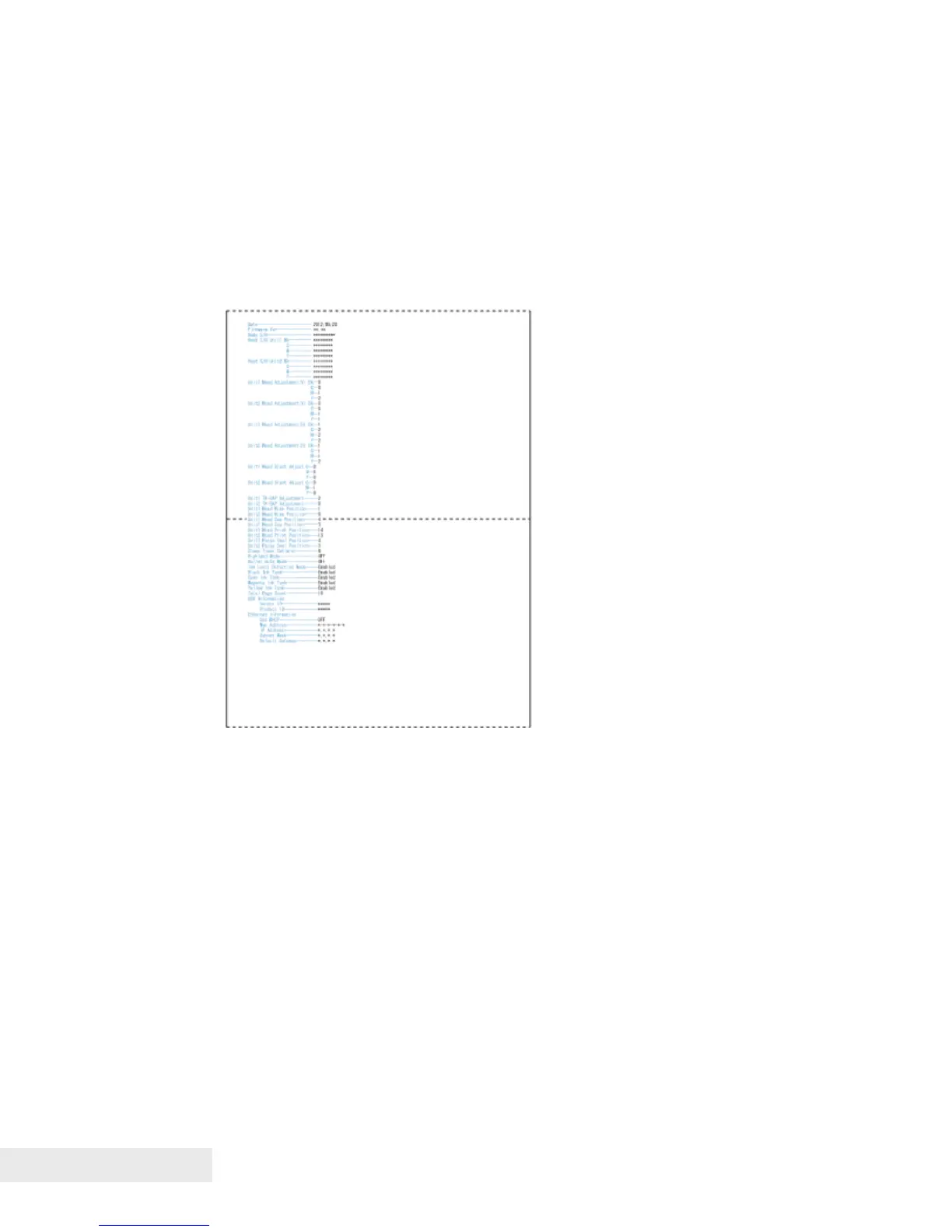 nozzle status, and internal settings. Using a PC, test patterns can be printed