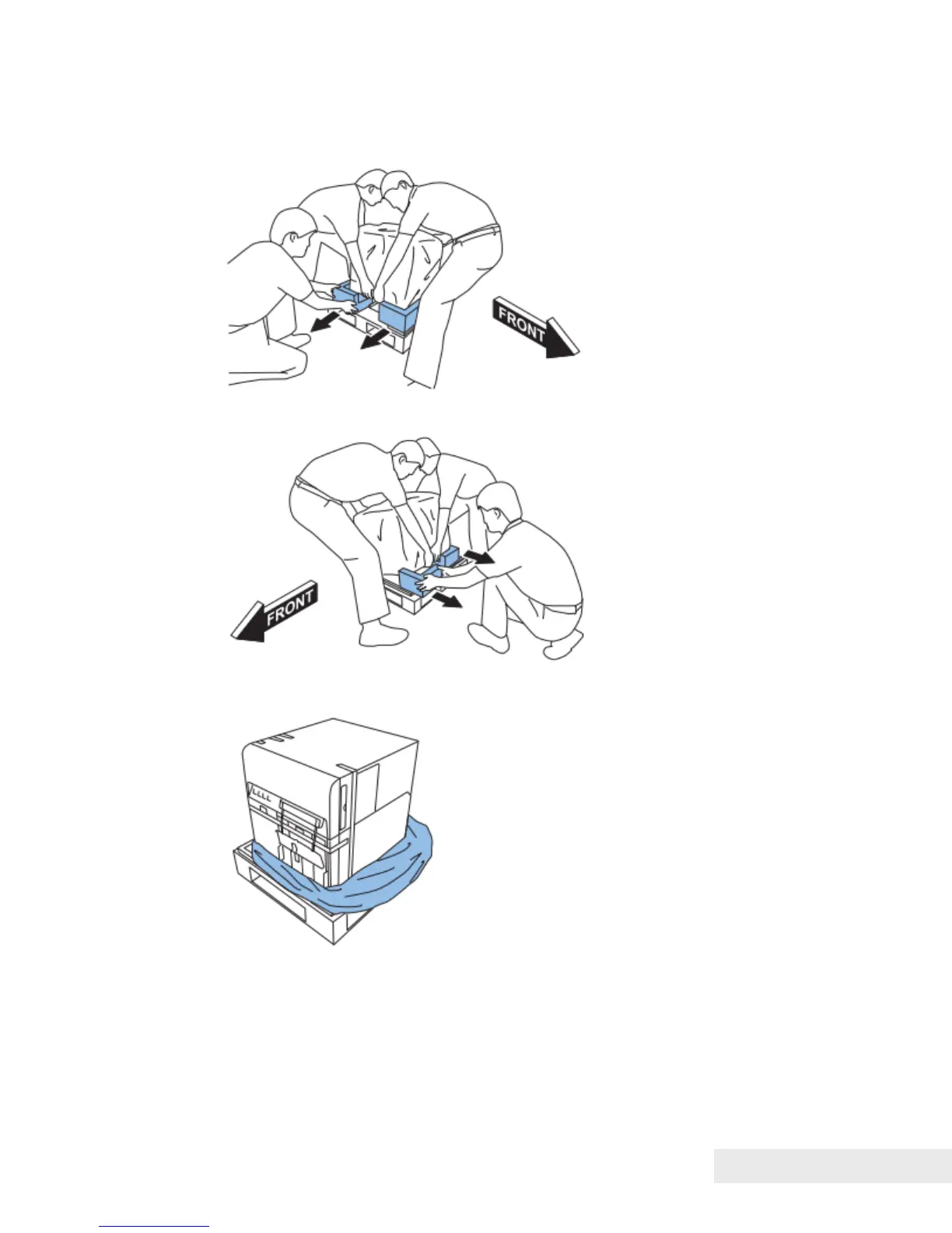 3) Lift either side of the printer temporarily to remove the 2 lower pads. Next,