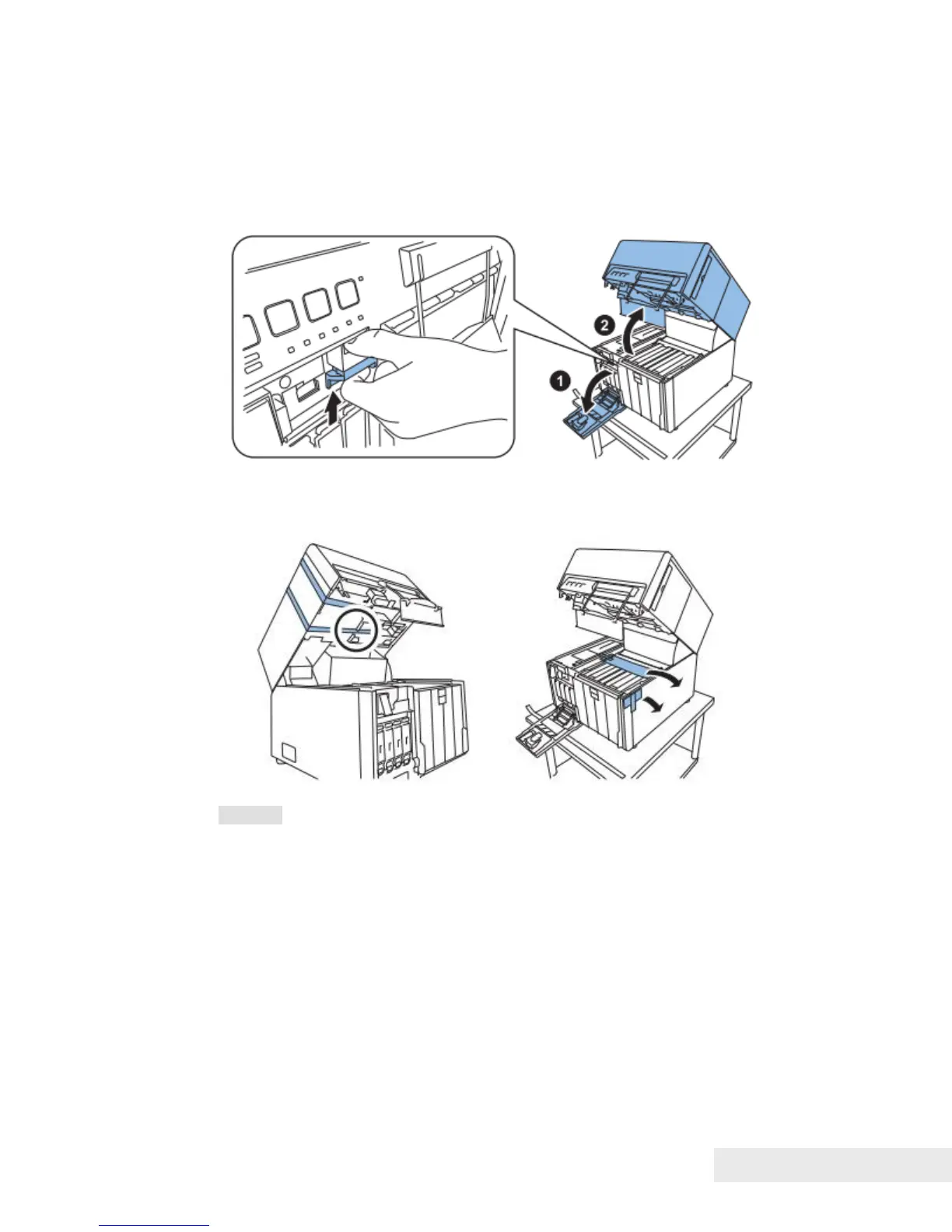 7) Open Ink Tank Door, and then push Upper Unit Open Lever to open Upper