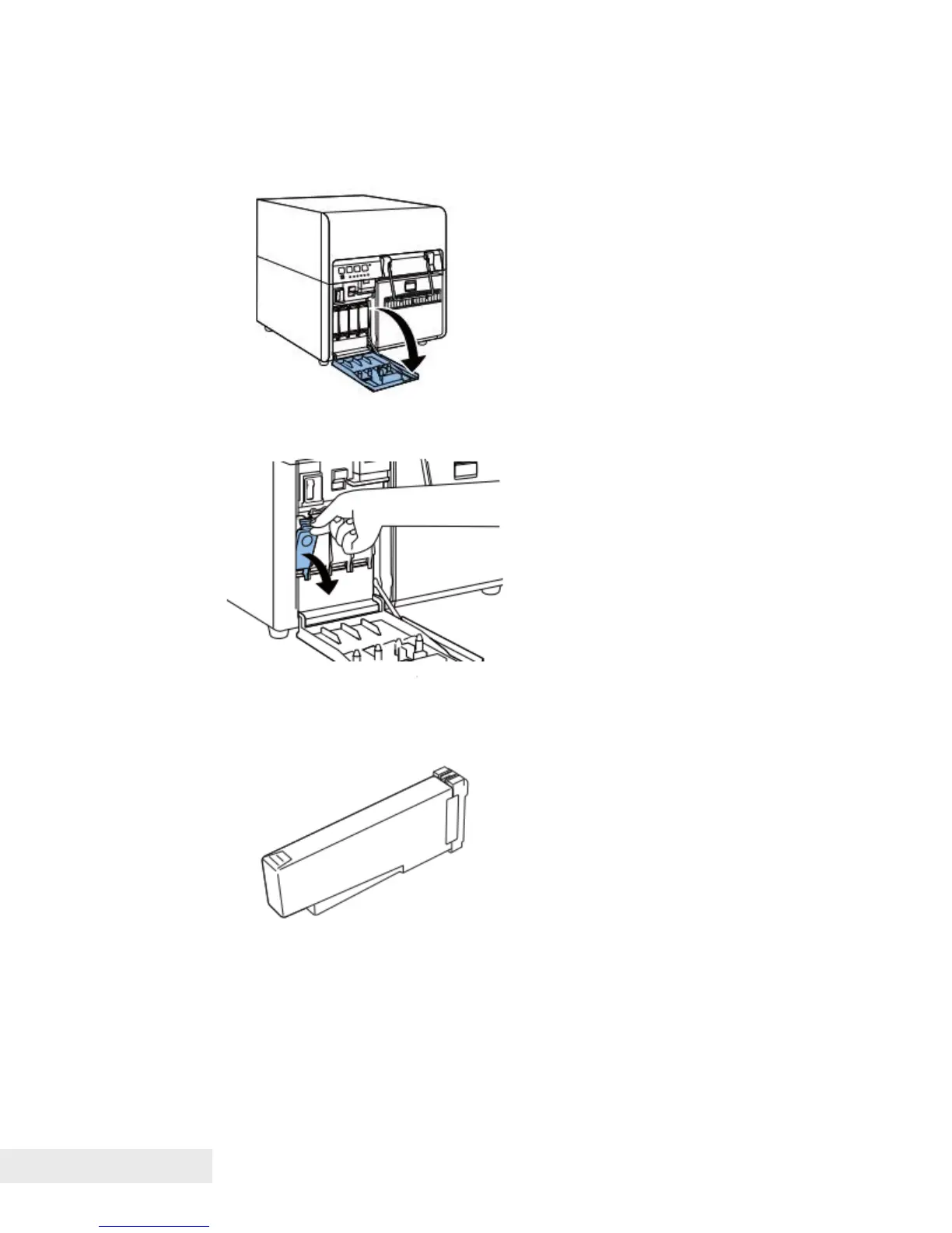 2) Open Ink Tank Lever for each color while pushing it downward.