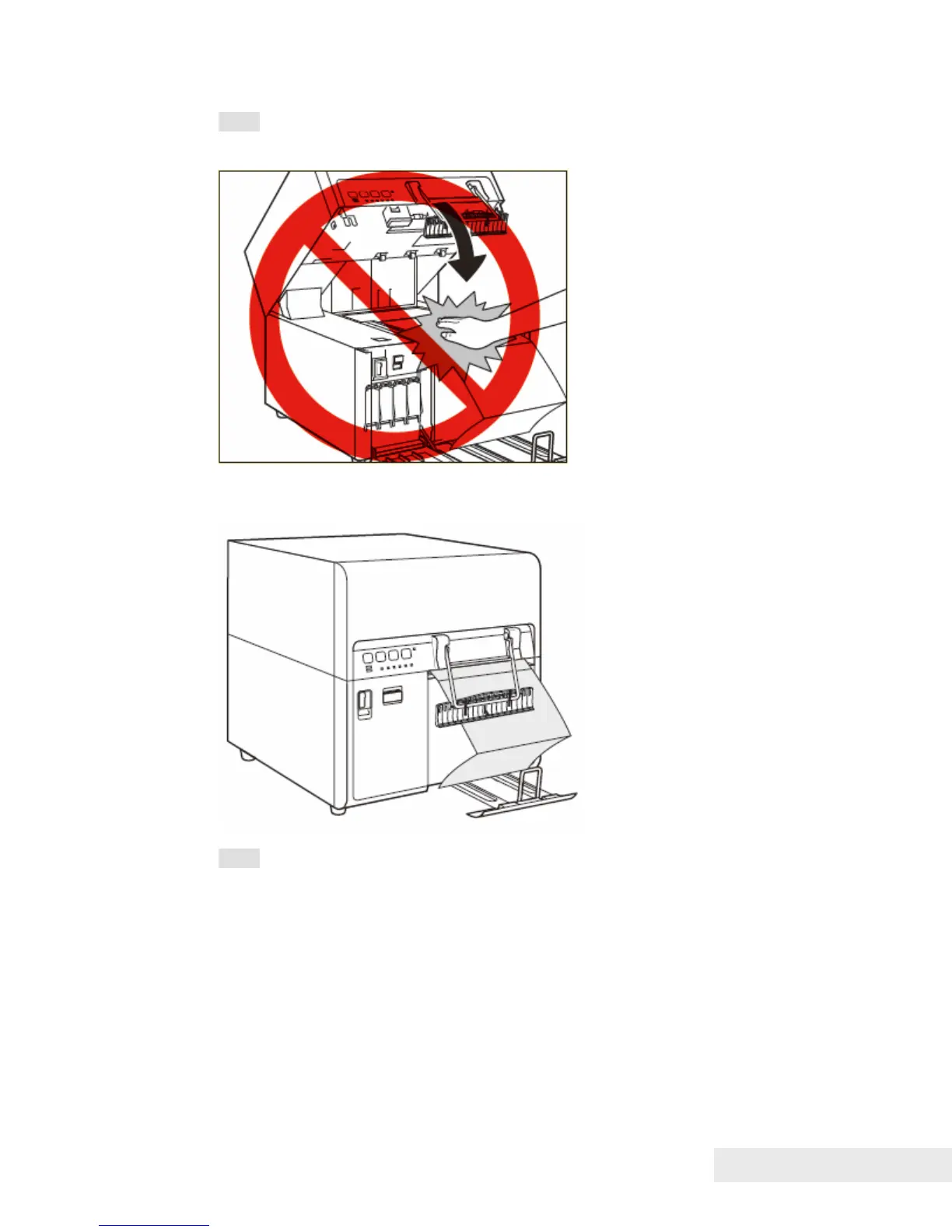 Note: Close the upper unit gently to avoid catching your hands, as this may