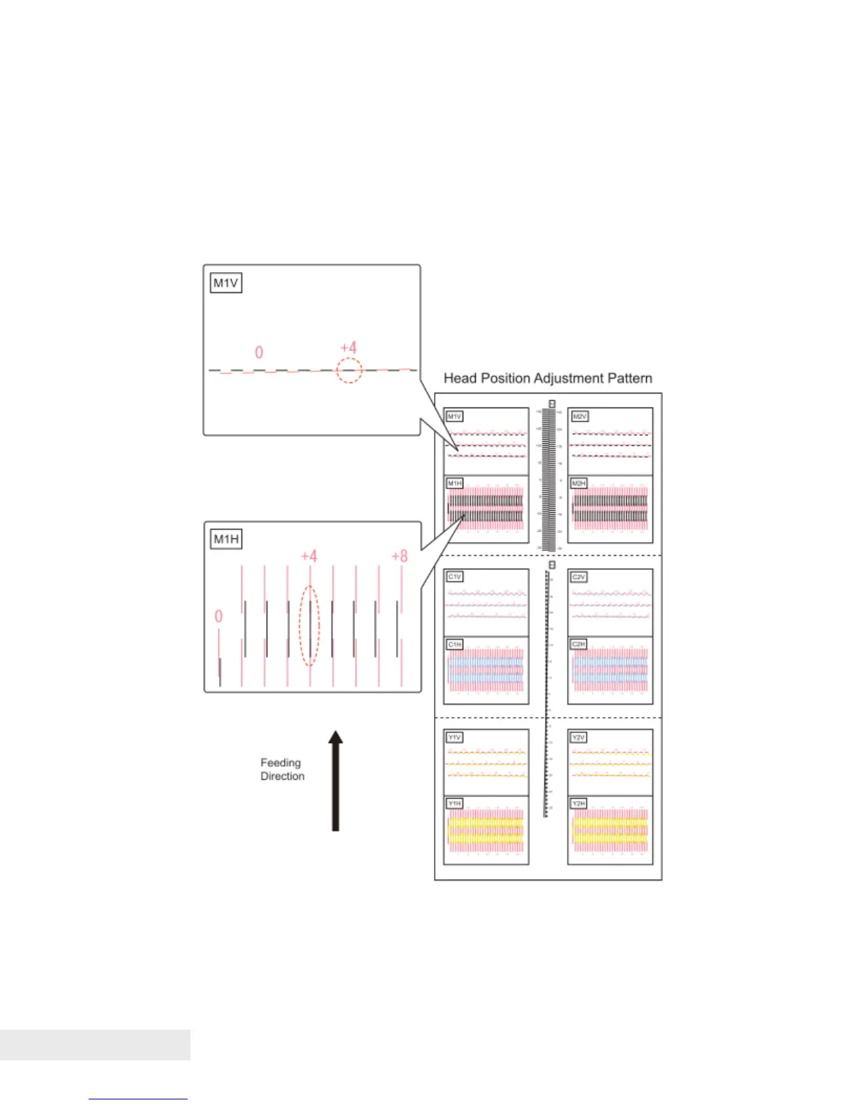 The relative color registrations in the feeding direction can be examined in the