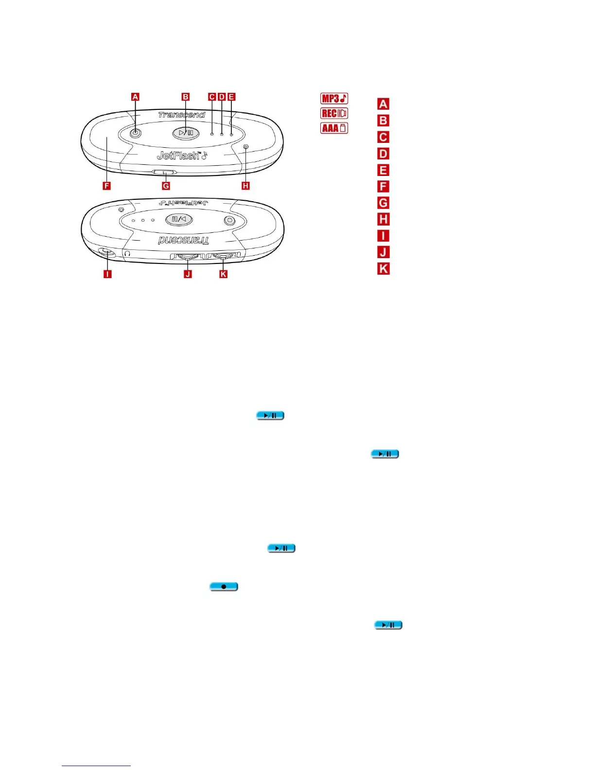 To exit from MP3 mode, press and hold the PLAY/PAUSE