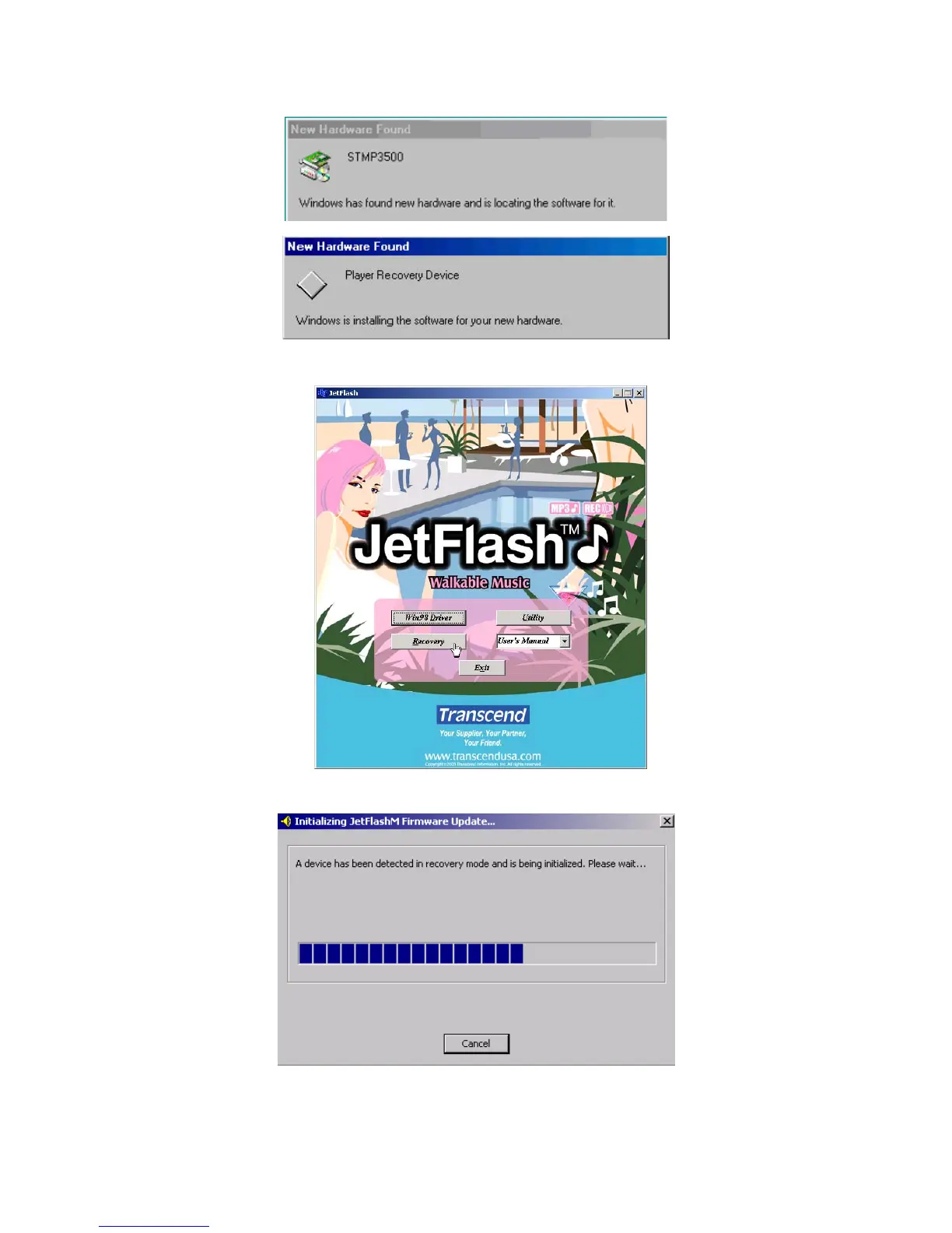 4. New Hardware Found messages appear. (Only the first time you recover the JetFlash.)