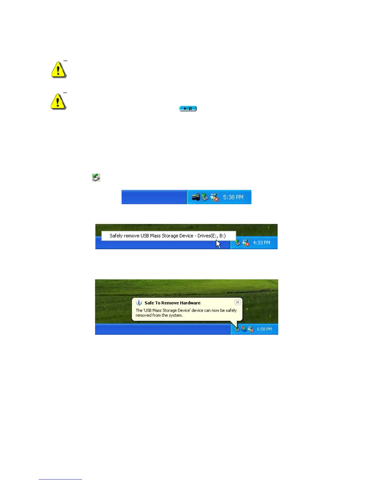3. A message box appears: The ‘USB Mass Storage Device’ device can now be safely