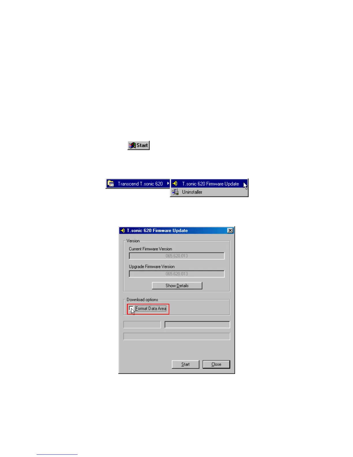 2. The T.sonic 620 Firmware Update dialog box appears.