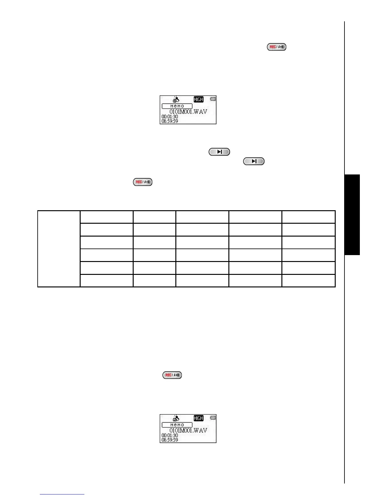 recording, pressing the “PLAY/PAUSE/PWR ON-OFF” button