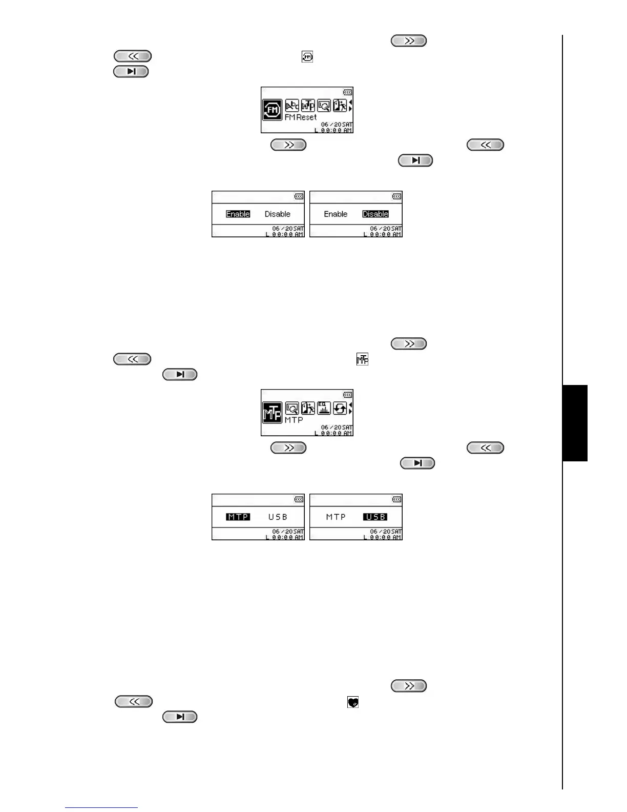 to select the FM Reset icon , then press the “PLAY/PAUSE/PWR ON-OFF”