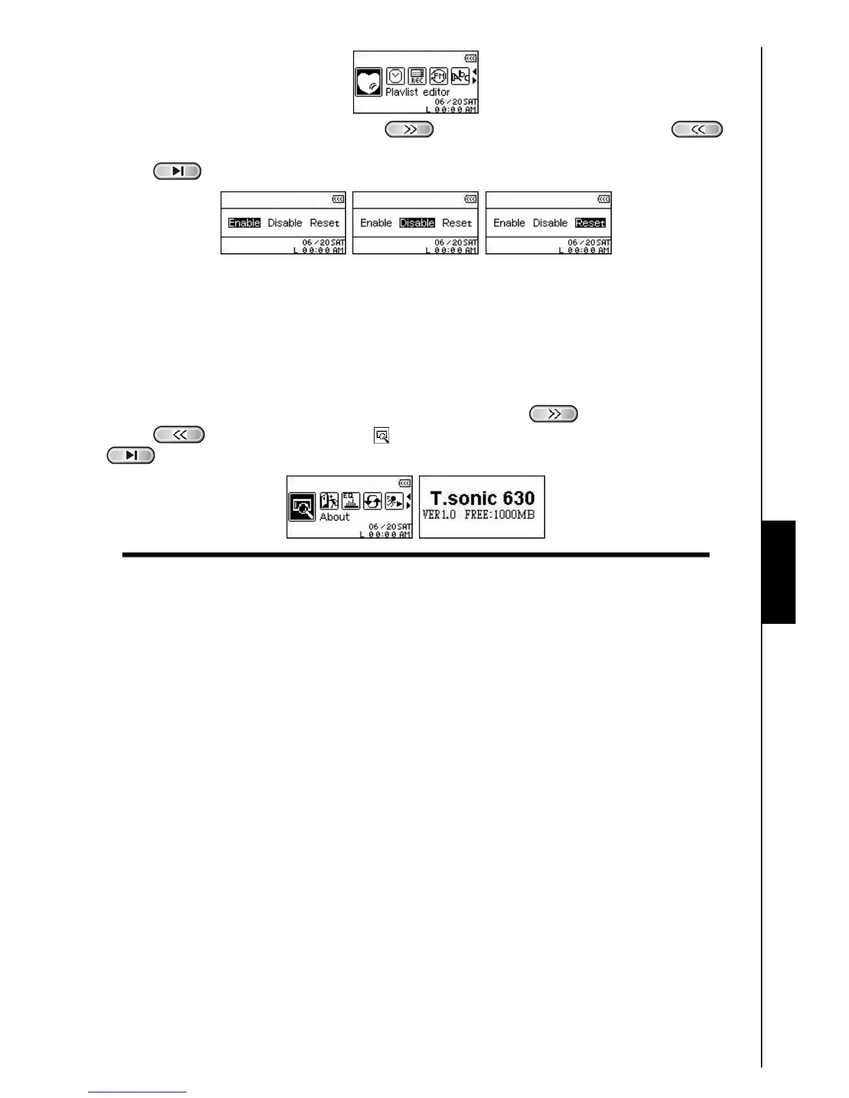ENABLE, DISABLE, or RESET your current Playlist. Press the “PLAY/PAUSE/PWR ON-OFF”
