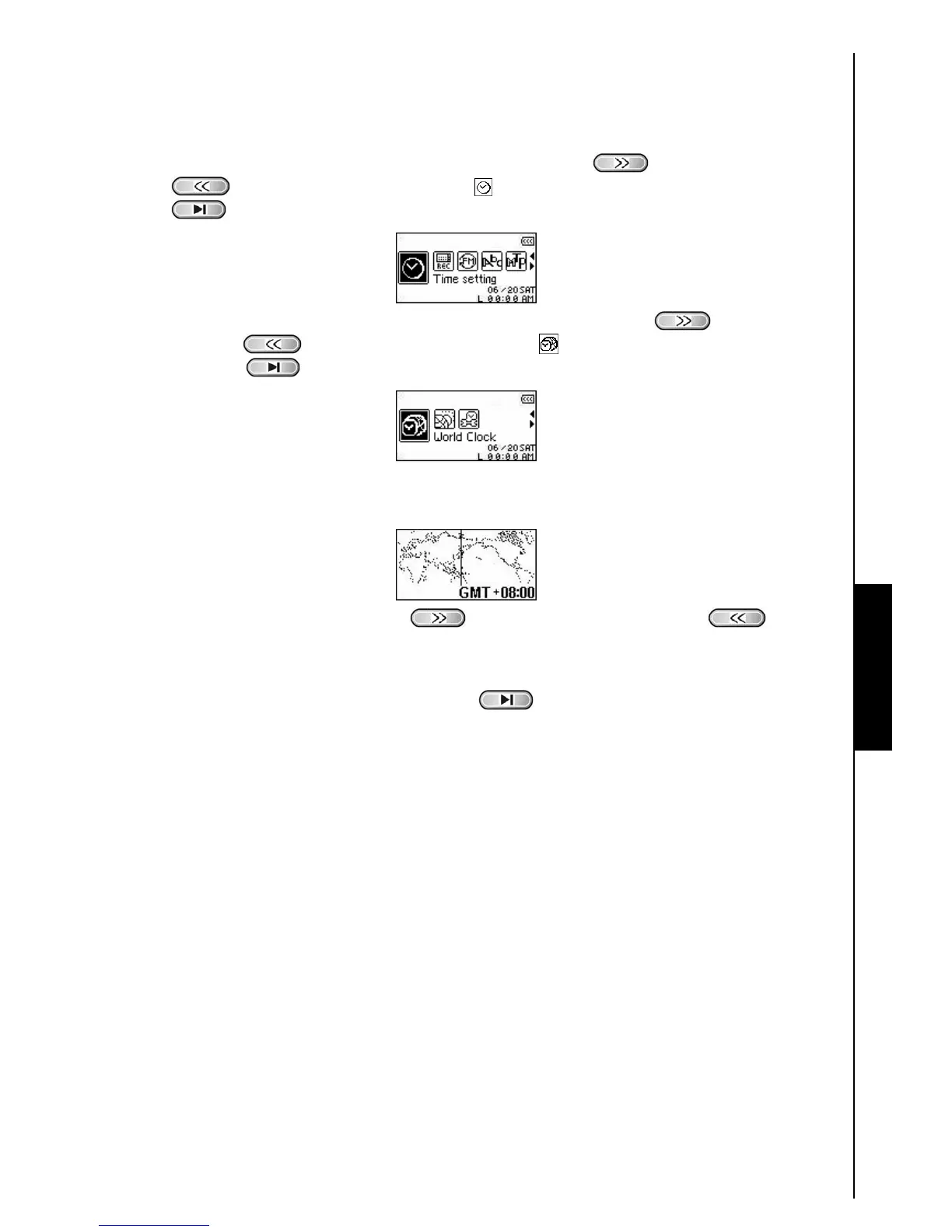to select the World Time icon , then press the “PLAY/PAUSE/PWR