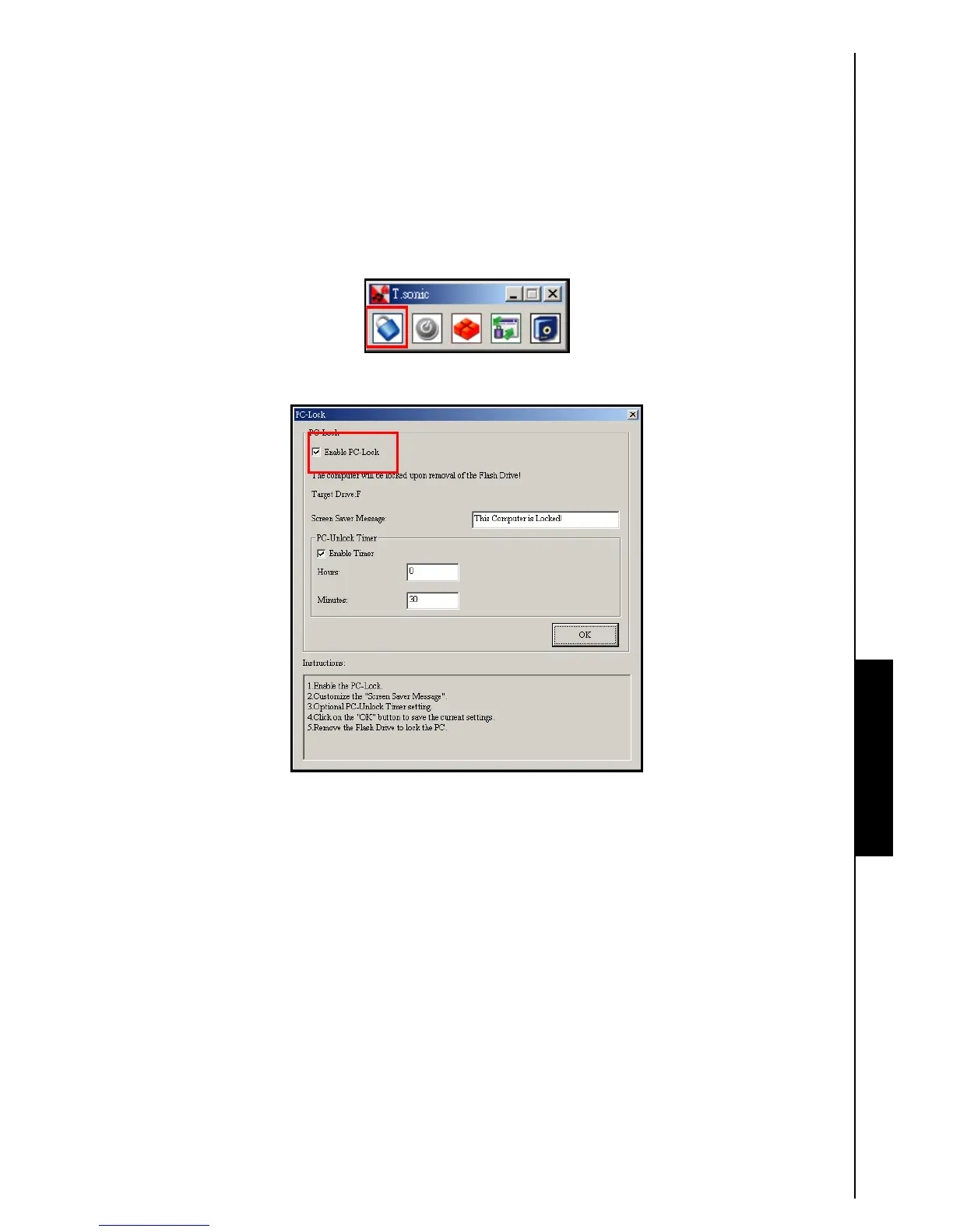 1. Click on the “PC-Lock” button in the “T.sonic Utility” window.
