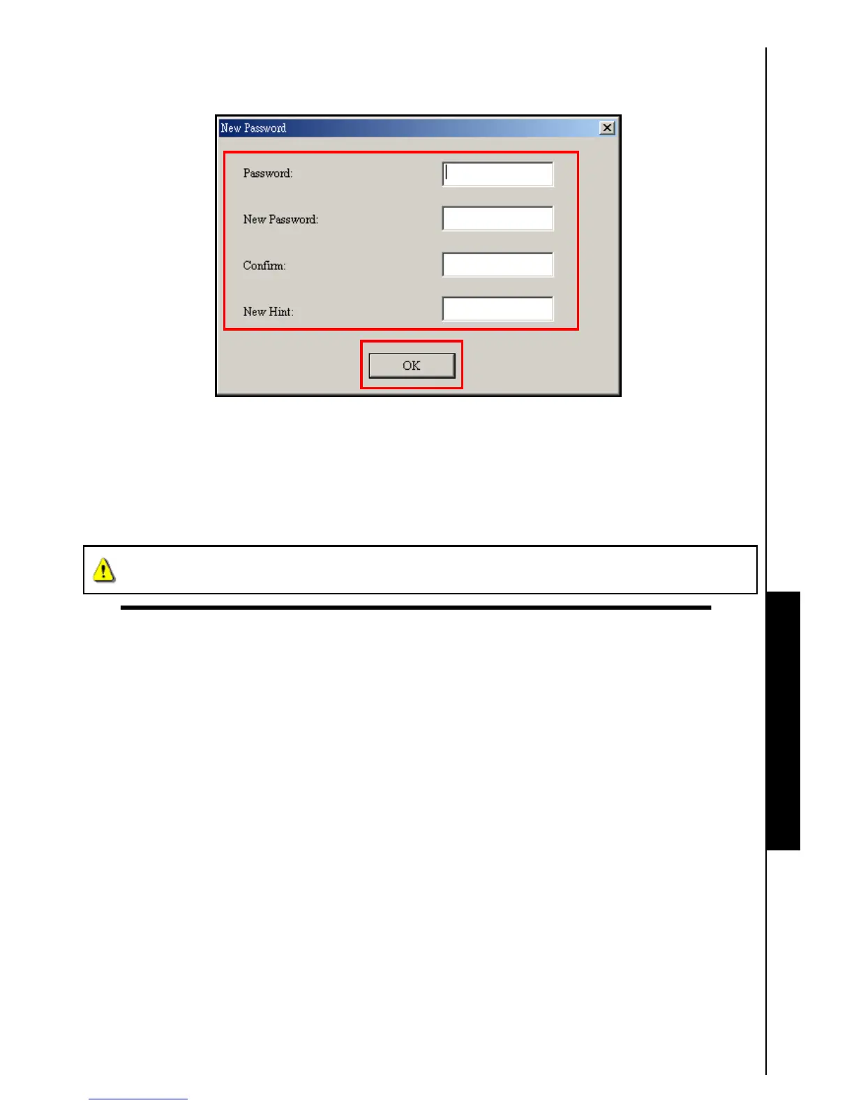 “Confirm Password” and a “New Password Hint” (a reminder, should you forget your password).