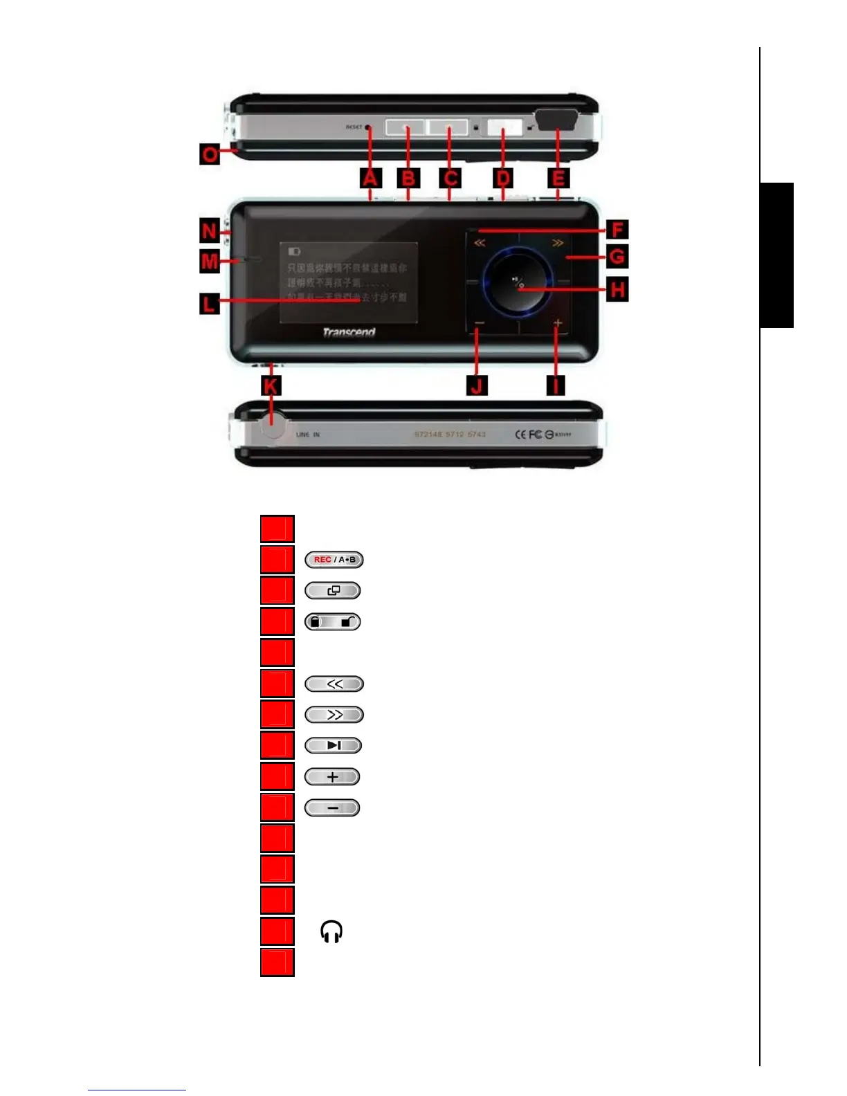 Transcend 630 - Product Overview; A-B Repeat;Rec Button; Menu Button; LOCK Switch