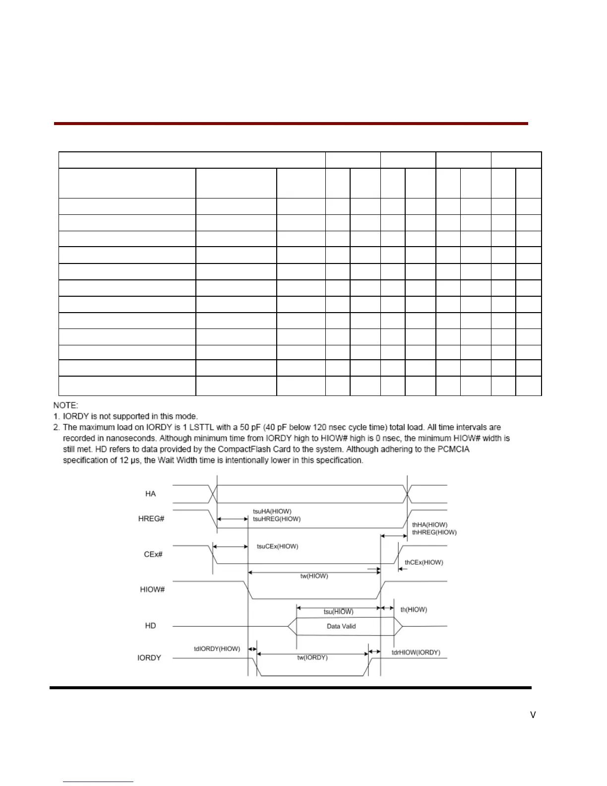 I/O Output (Write) Timing Specification