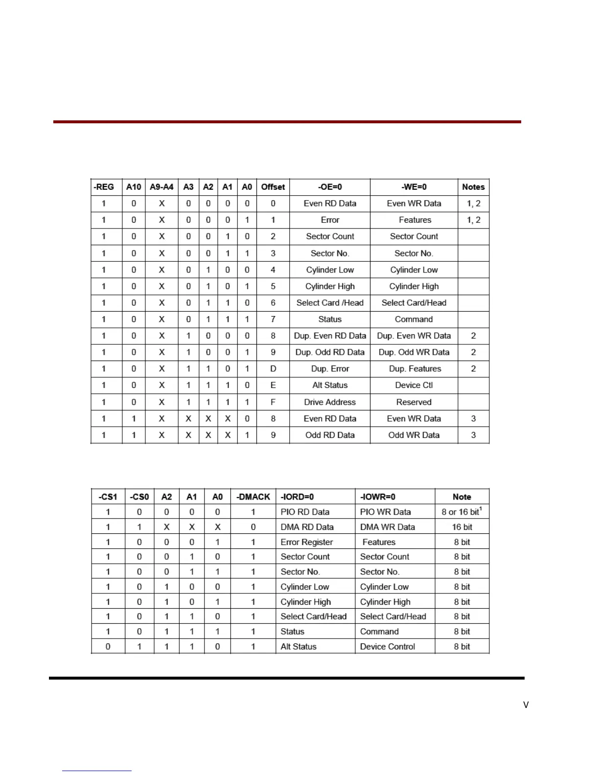 When the CompactFlash Storage Card is configured in the True IDE Mode, the I/O decoding is as follows: