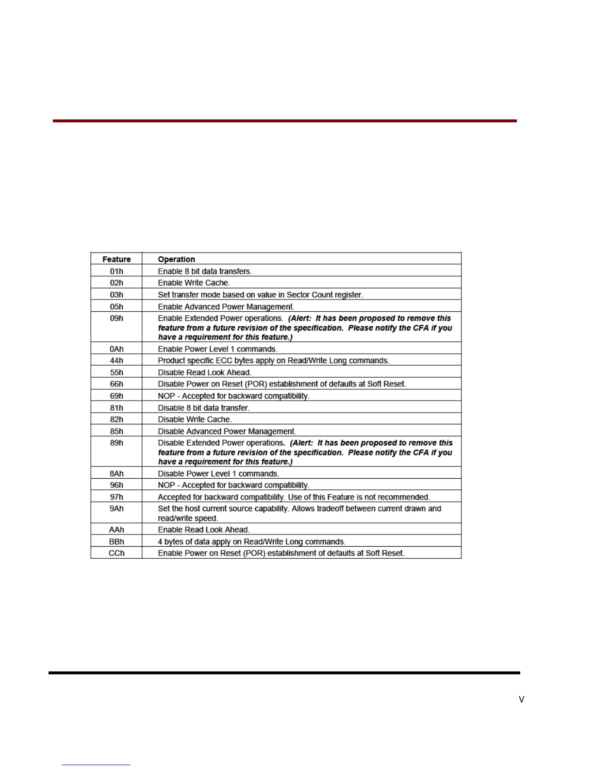 Features 02h and 82h allow the host to enable or disable write cache in CompactFlash Storage Cards that