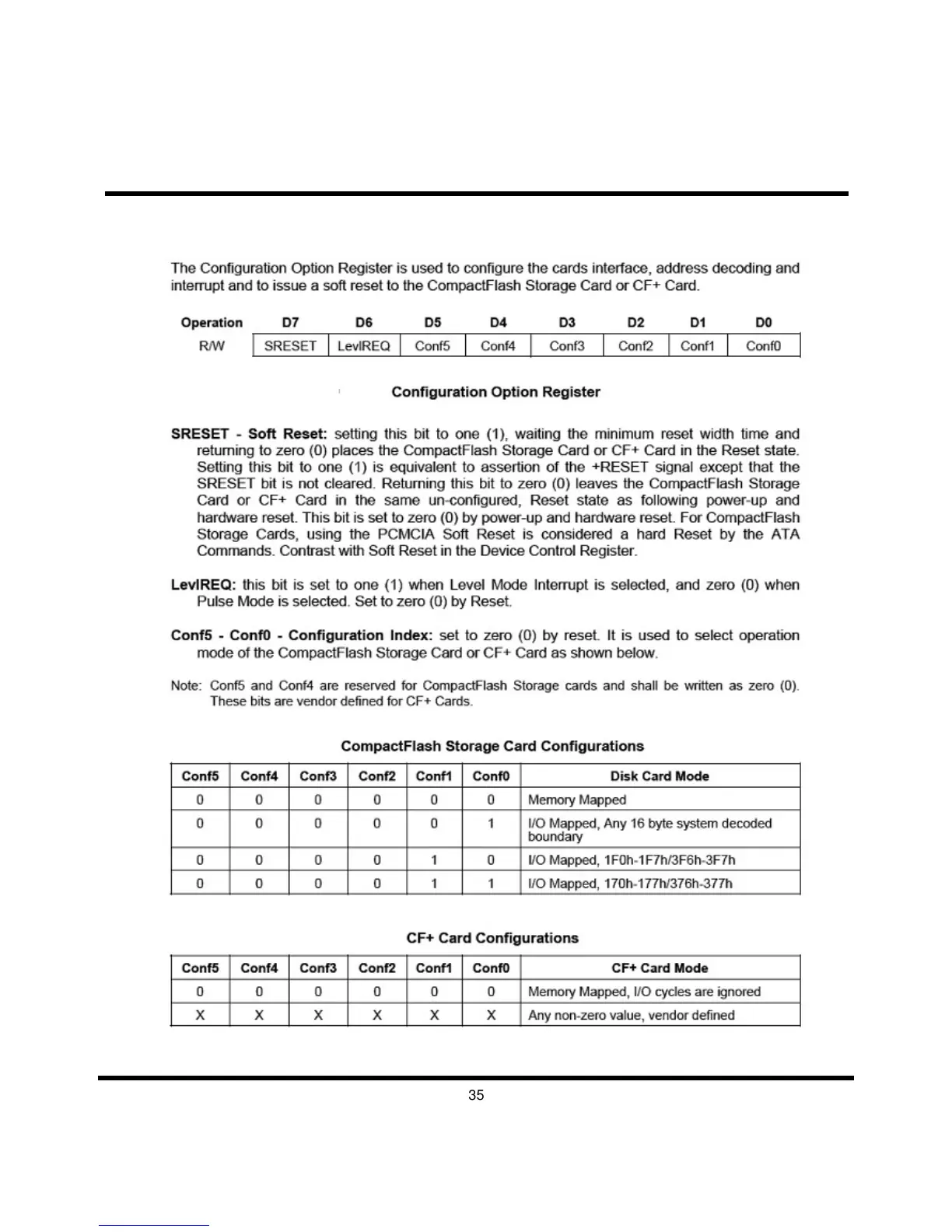 Configuration Option Register (Base + 00h in Attribute Memory)