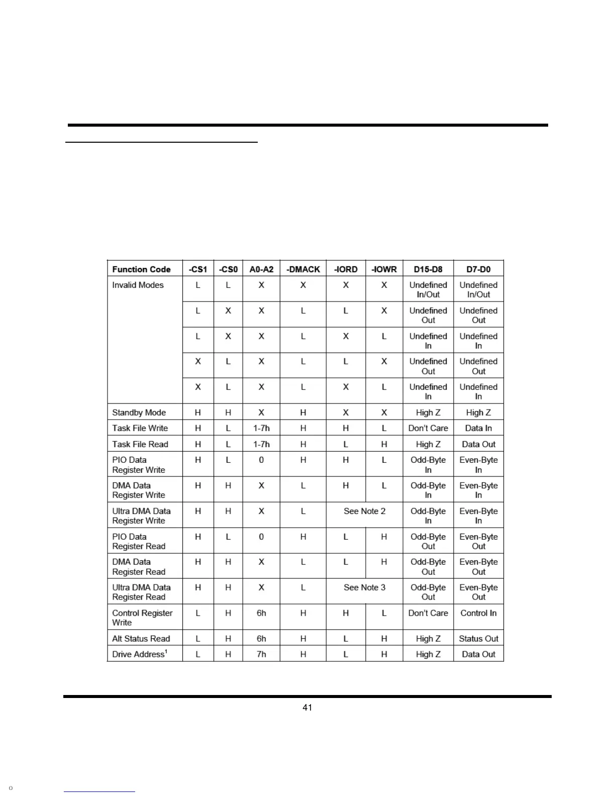 Table: True IDE Mode I/O Function defines the function of the operations for the True IDE Mode.