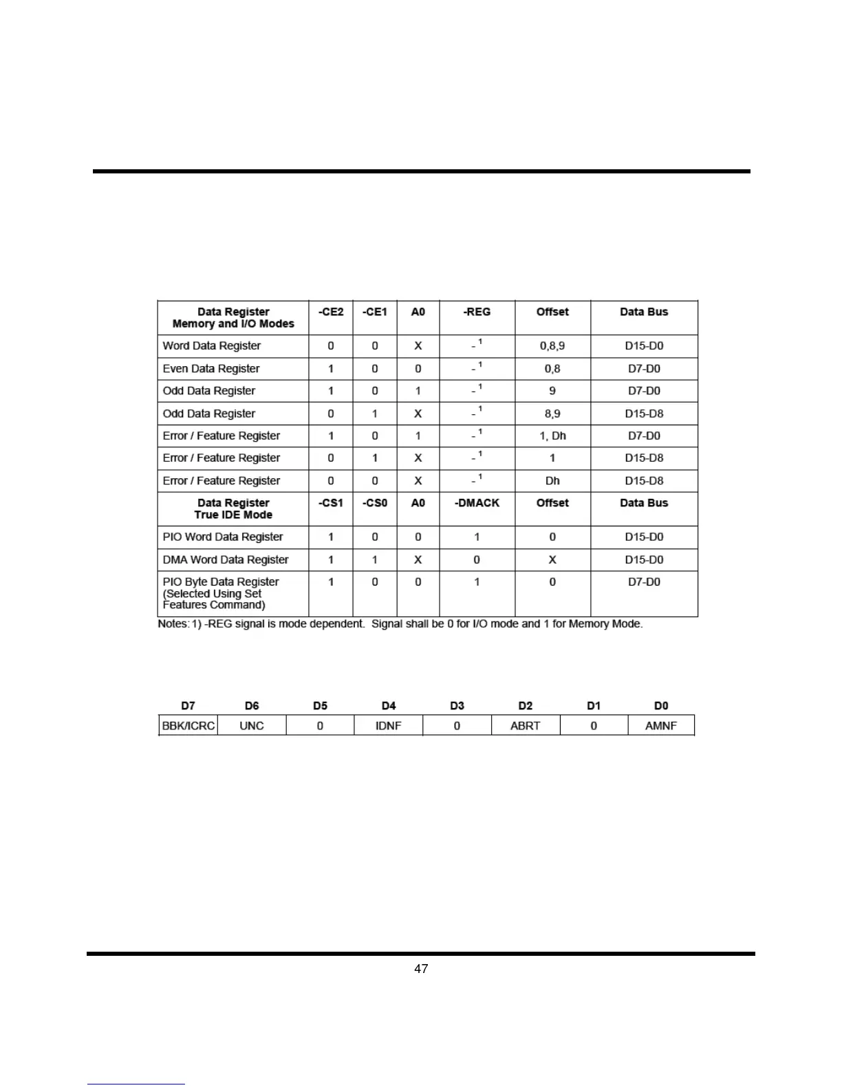 This register is also accessed in PC Card Modes on data bits D15-D8 during a read operation to offset 0 with