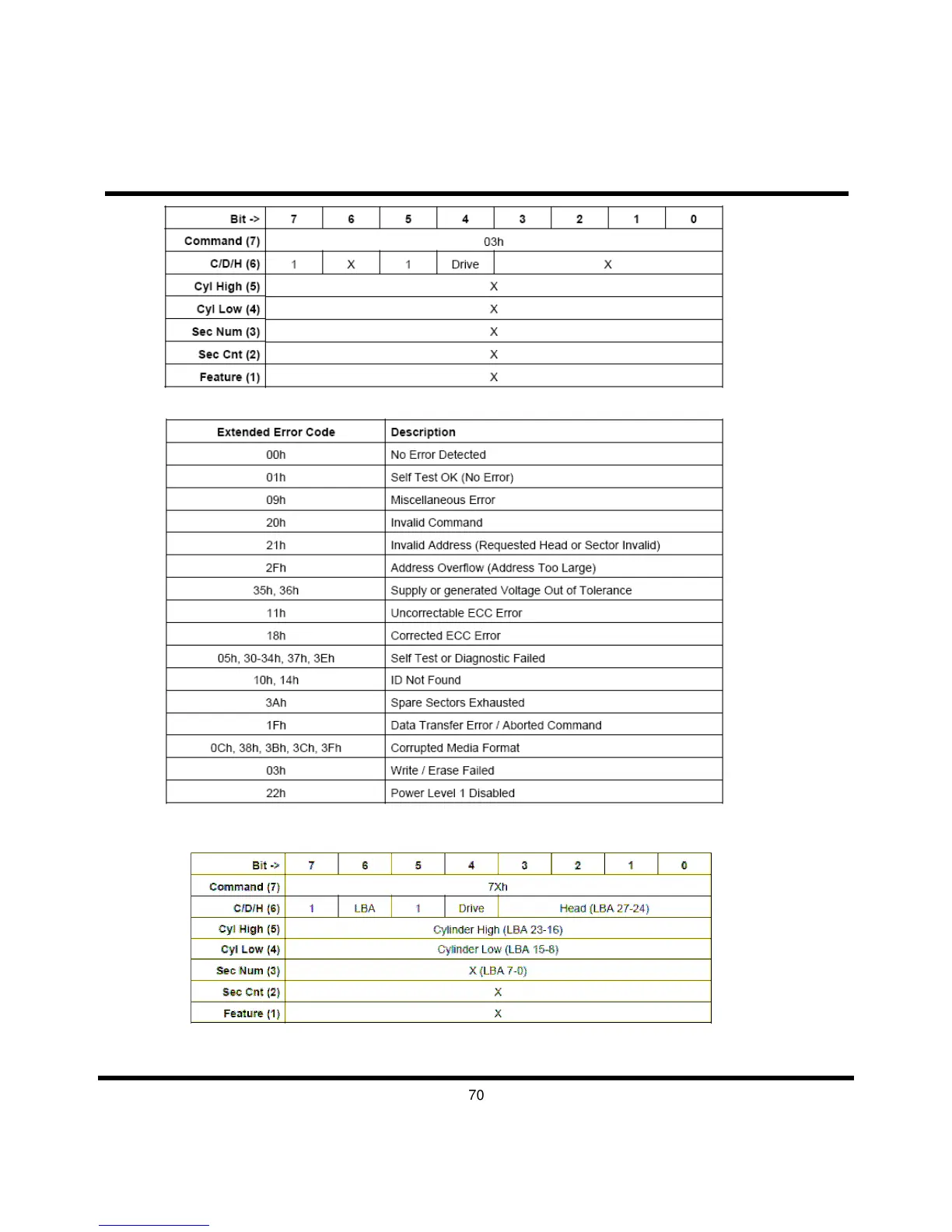 The extended error code is returned to the host in the Error Register.