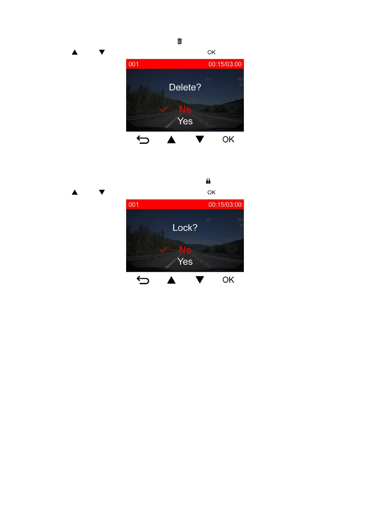 1. During playback of a normal video file, press . The message, “Lock?”, will pop up.