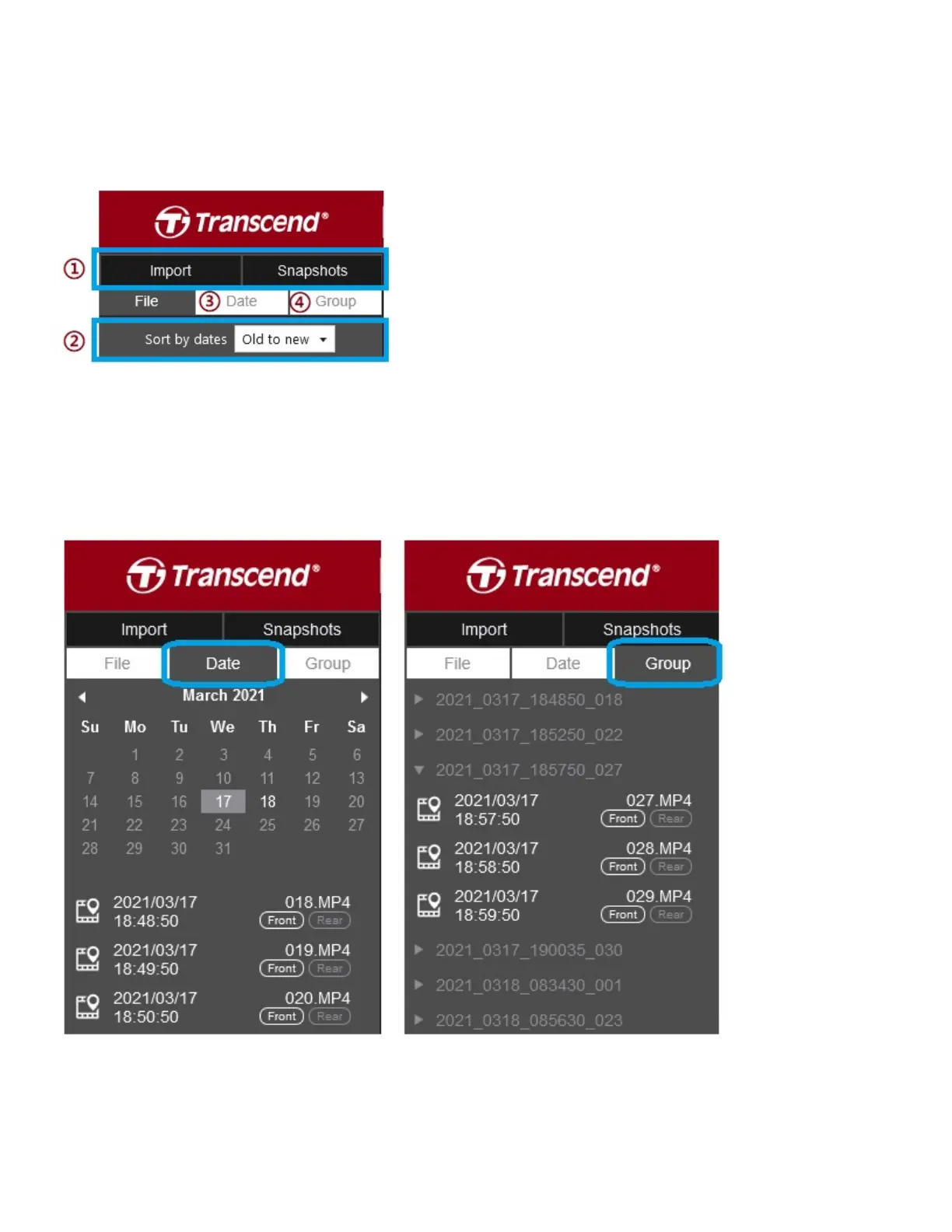 ② Sort videos by recording dates, either from old to new or