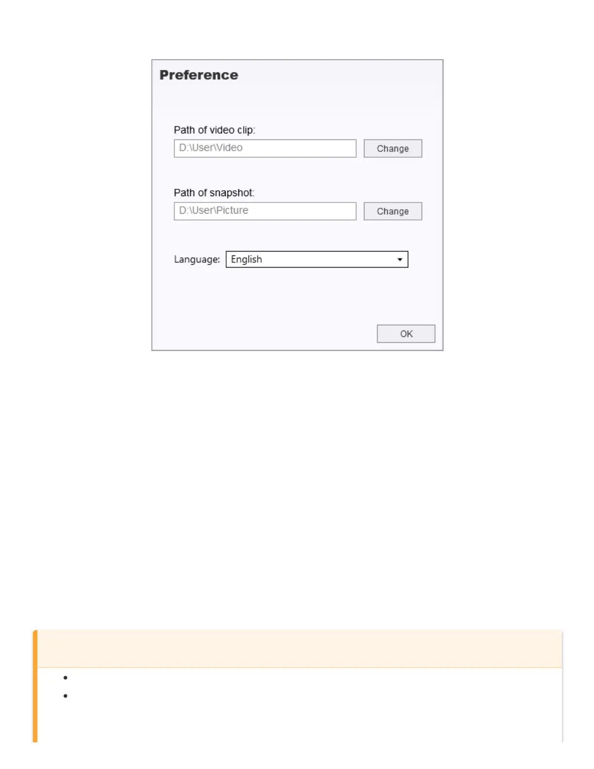 Tap Preference to change the saving routes of the videos/photos and the language settings.