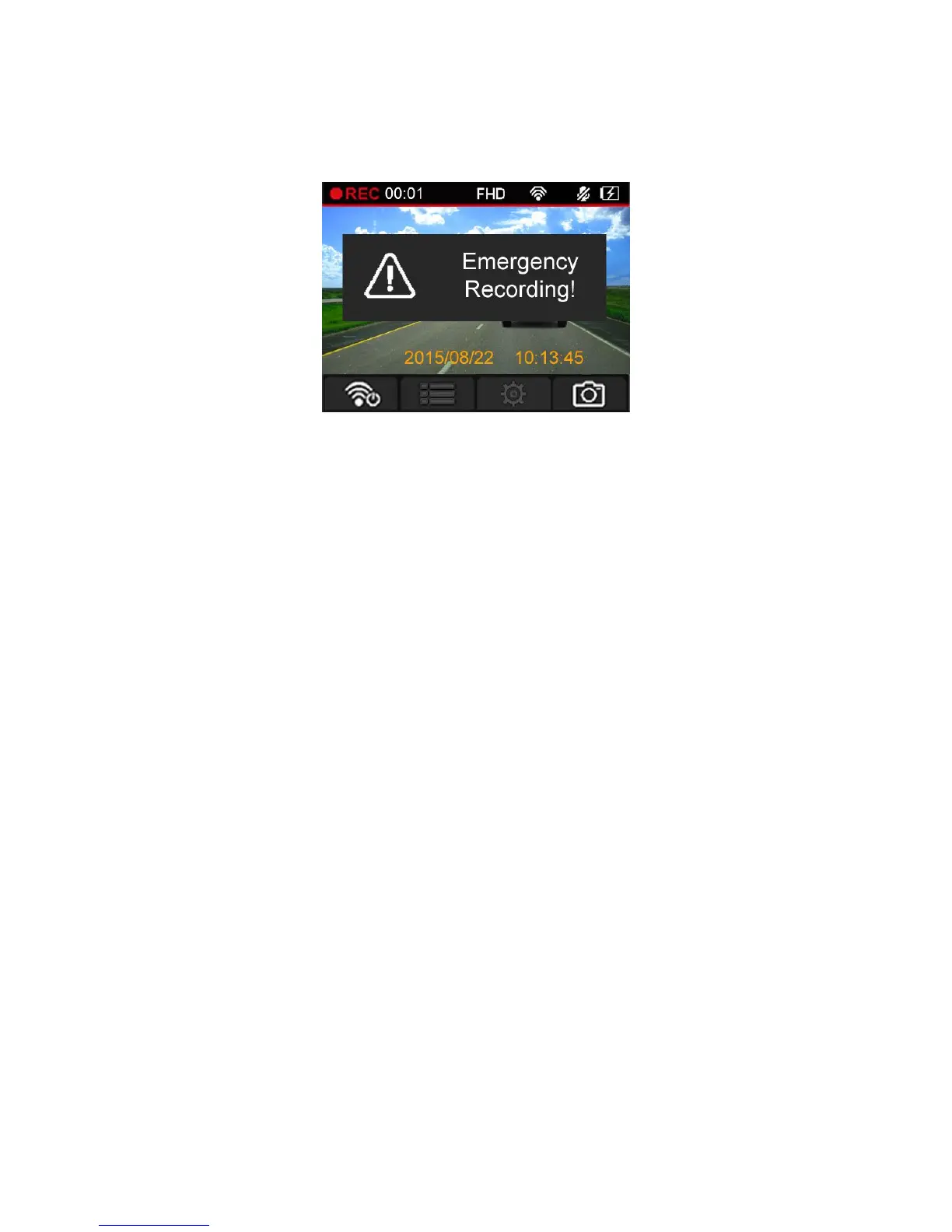 A warning will appear on the screen when the emergency recording is being activated.