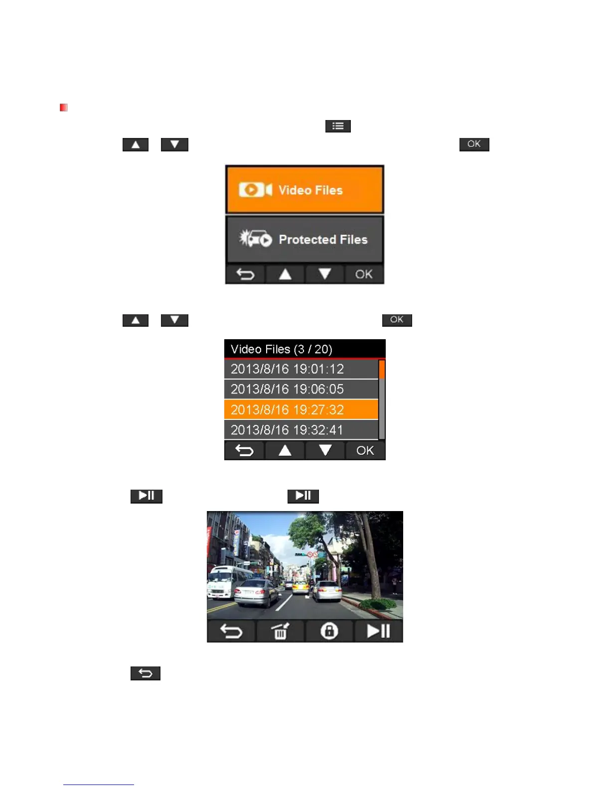 5. Press to return to the video file list.