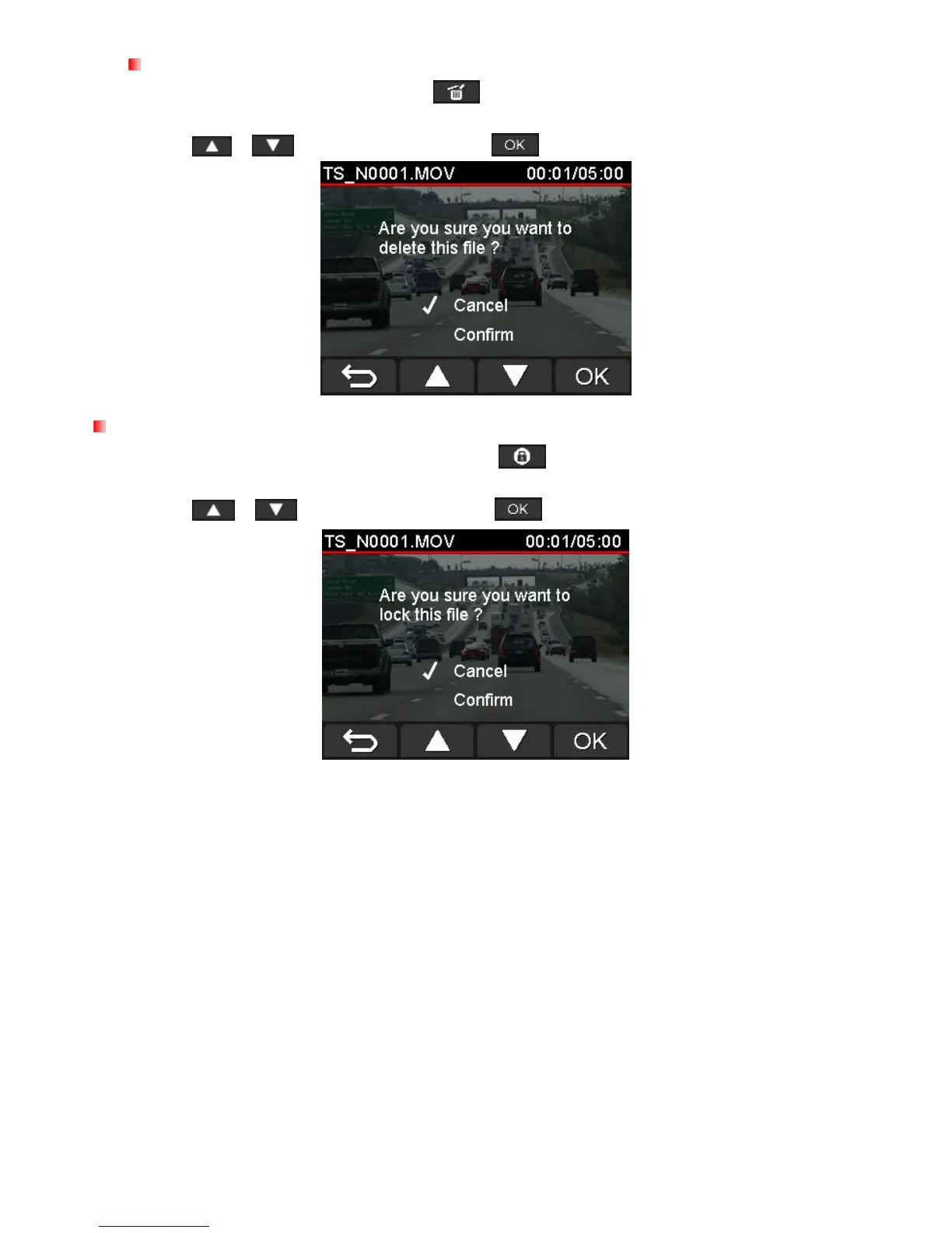 1. During playback of a video file, press . The message, “Are you sure you want to delete this