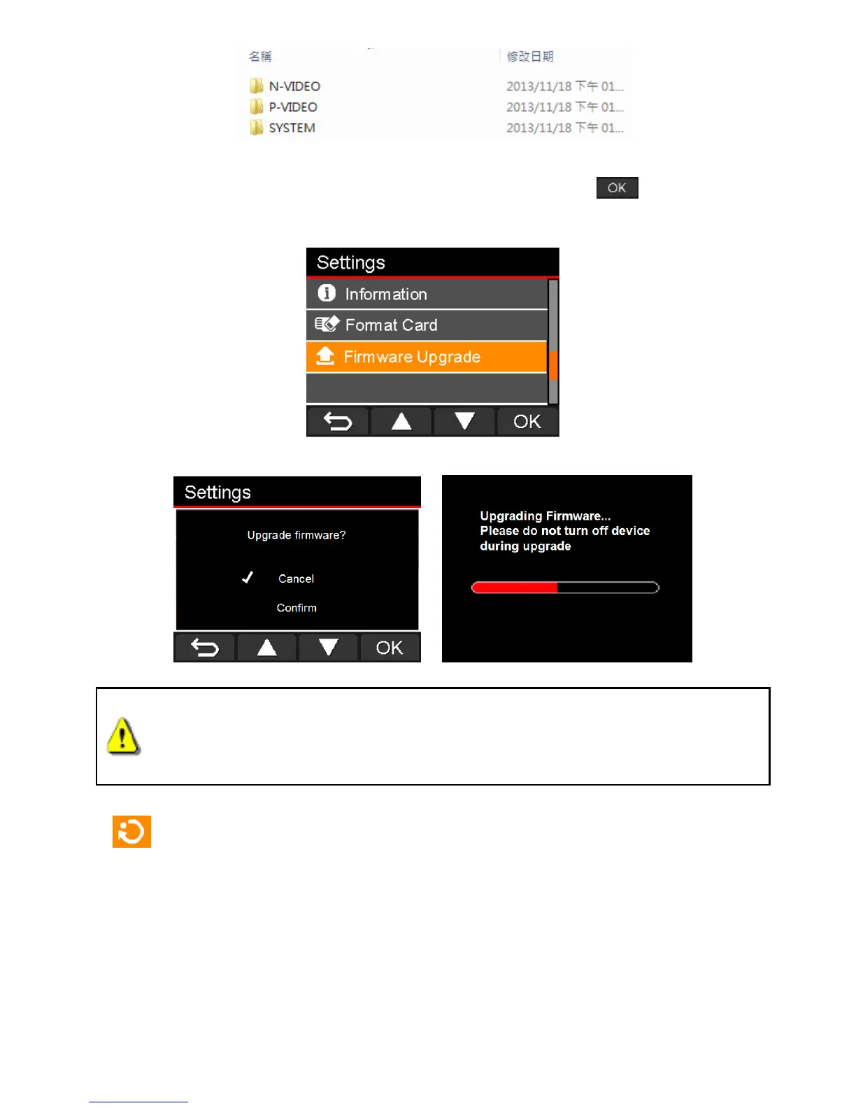 3. Select Firmware Upgrade from the Settings menu, and press to start the firmware