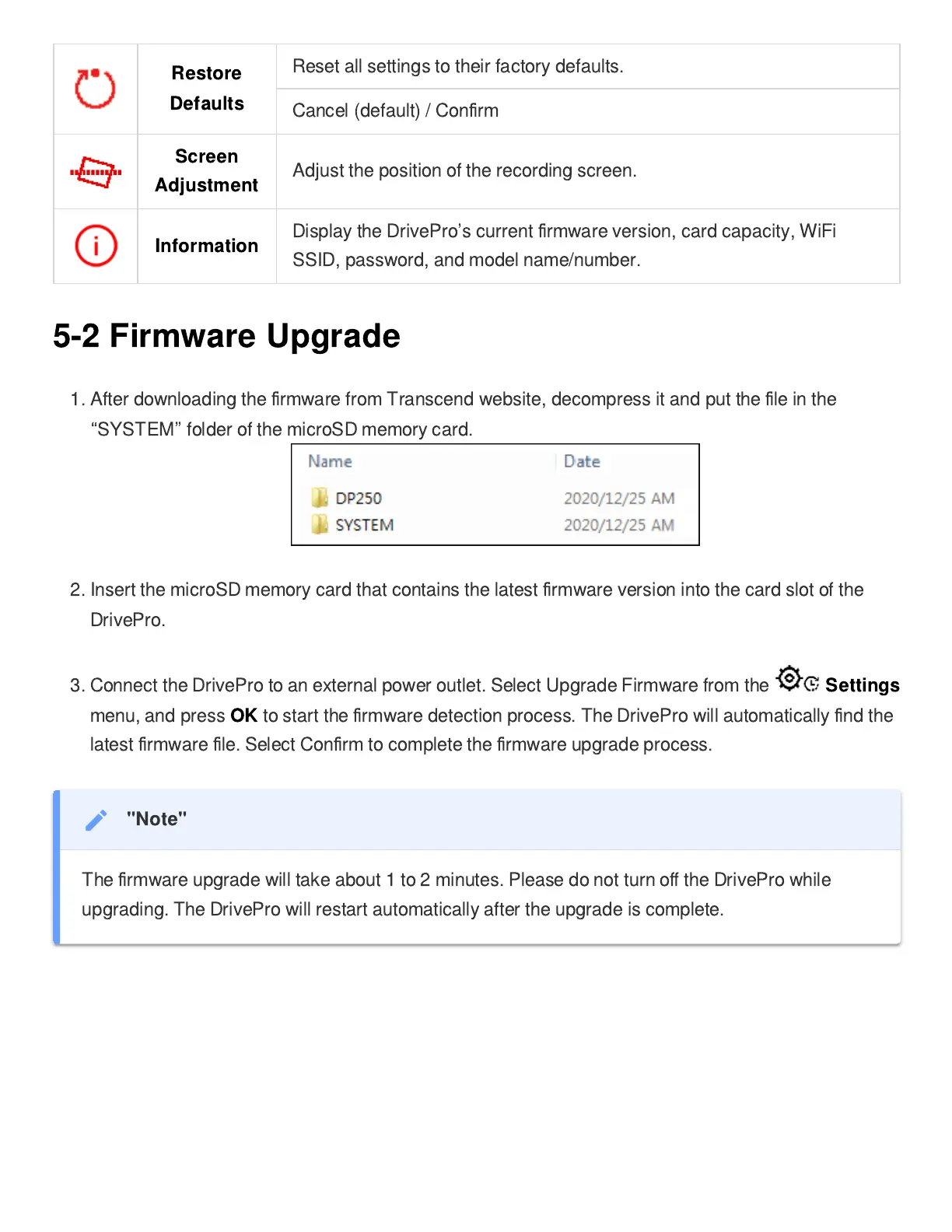 upgrading. The DrivePro will restart automatically after the upgrade is complete.