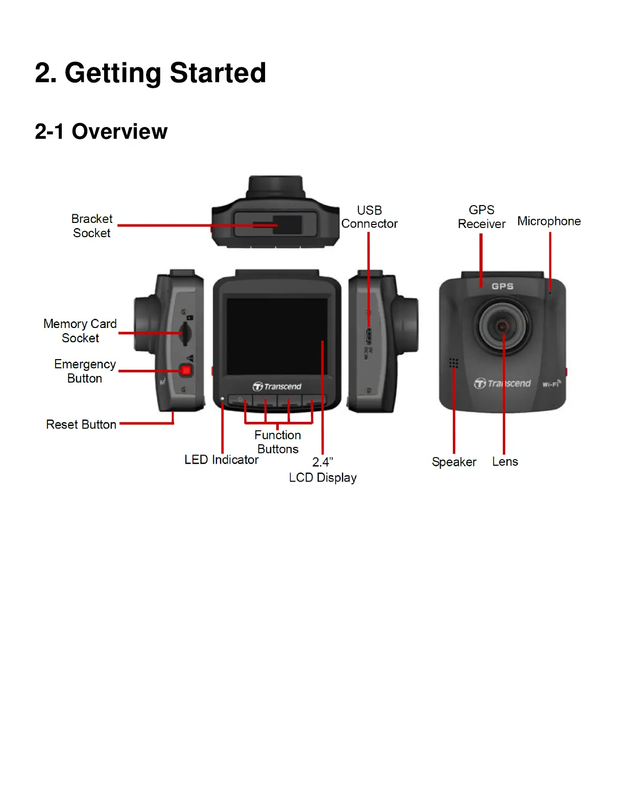 Transcend DrivePro 250 - Getting Started; Dashcam Component Overview