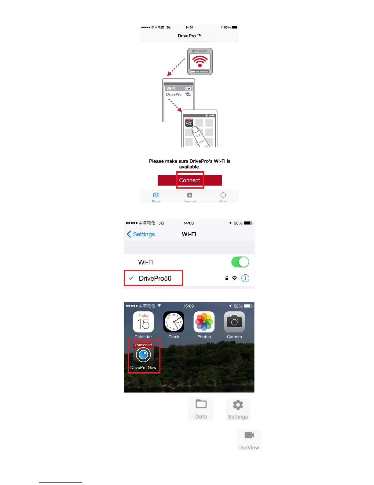 3. Select the “DrivePro™50” Wi-Fi link (default password is 12345678).