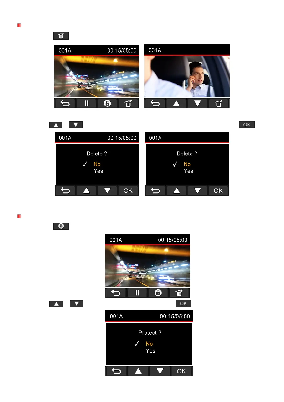 Transcend DrivePro 520 - Deleting Unwanted Files; Protecting Important Video Recordings