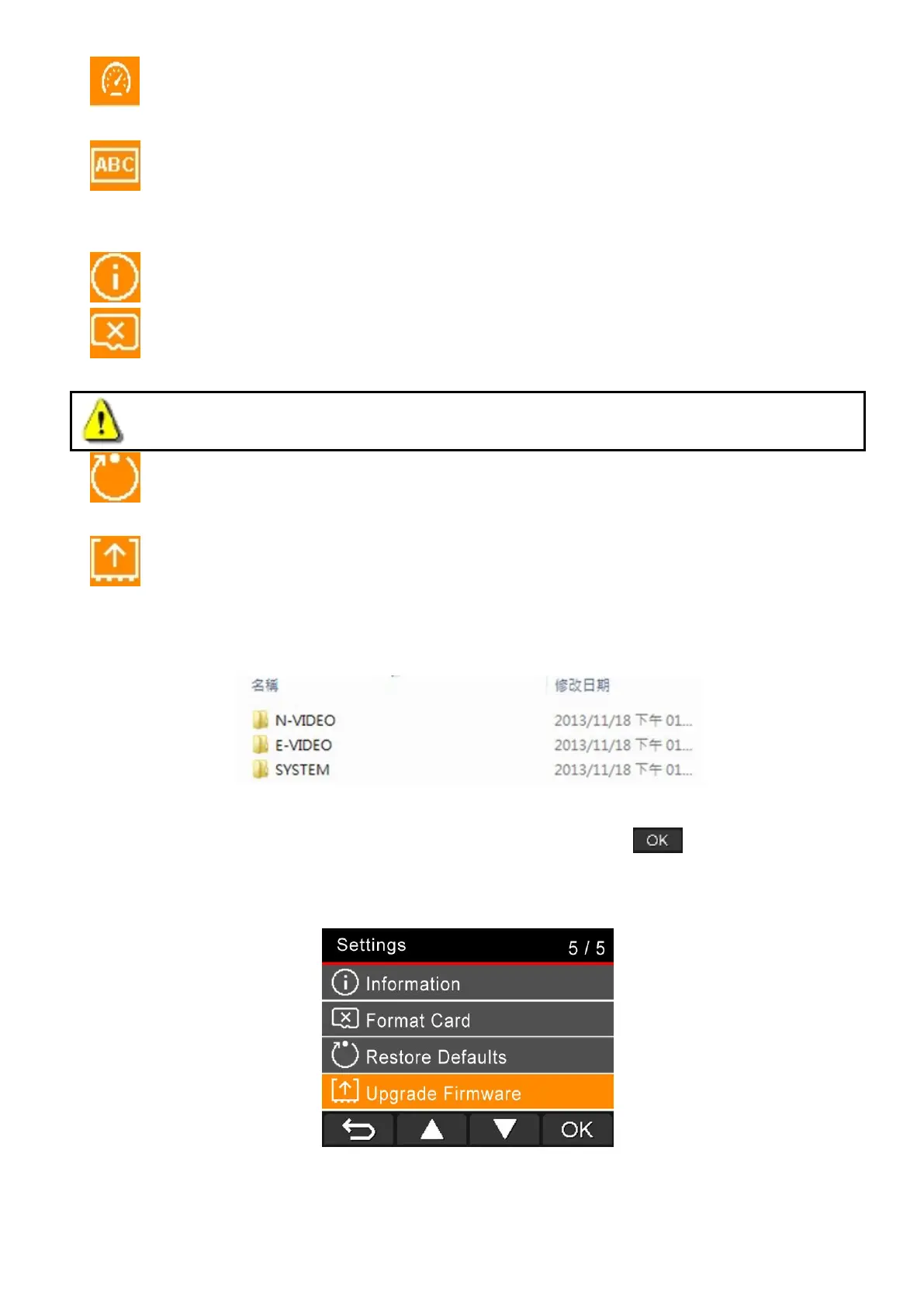 3. Select Upgrade Firmware from the Settings menu, and press to start the firmware