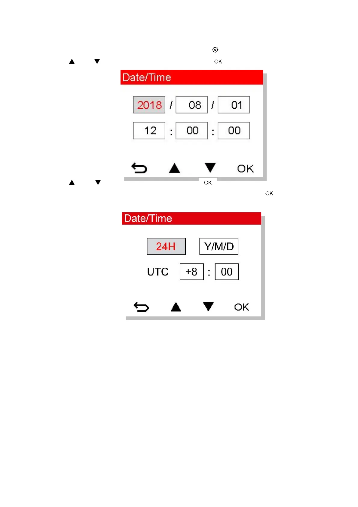 4. Repeat Step 3 to set up the date/time format and time zone. Press after finishing the