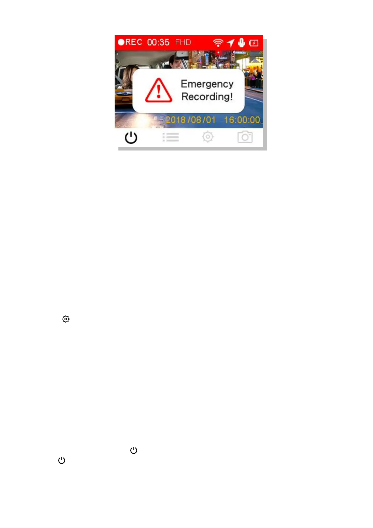 A warning will appear on the screen when the emergency recording is being activated.