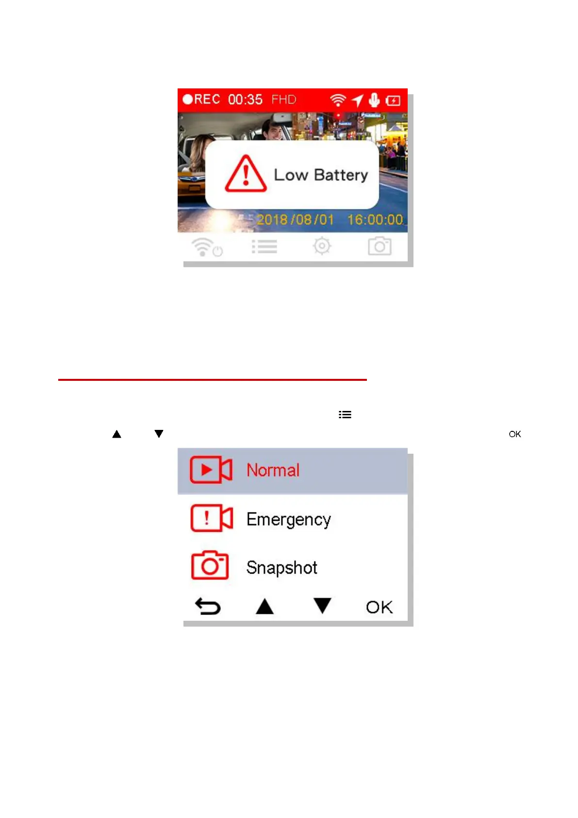 2. Use / to select either Normal, Emergency or Snapshot, and press .