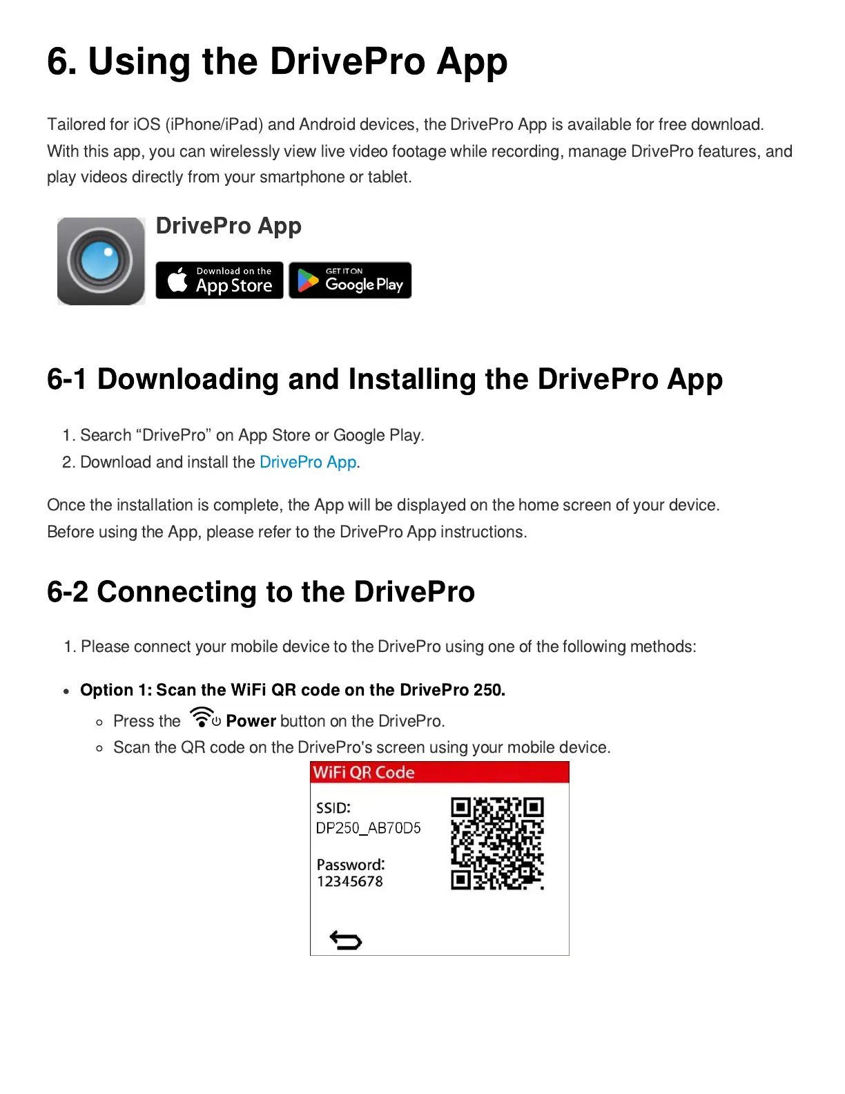 Option 1: Scan the WiFi QR code on the DrivePro 250.