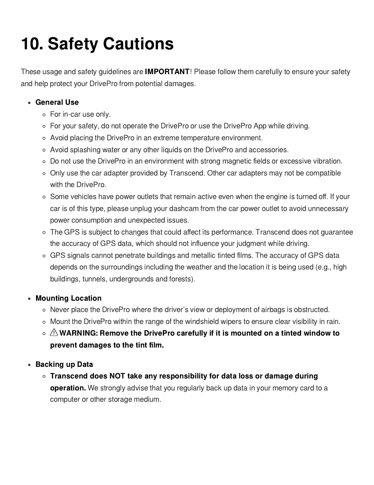 For your safety, do not operate the DrivePro or use the DrivePro App while driving.