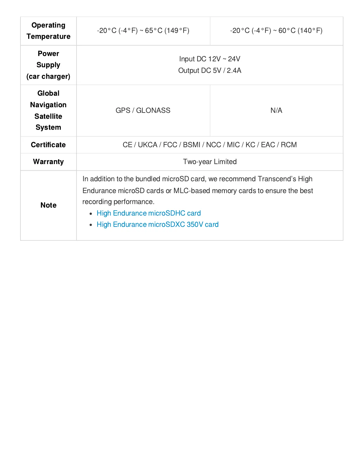 -20°C (-4°F) ~ 65°C (149°F) -20°C (-4°F) ~ 60°C (140°F)
