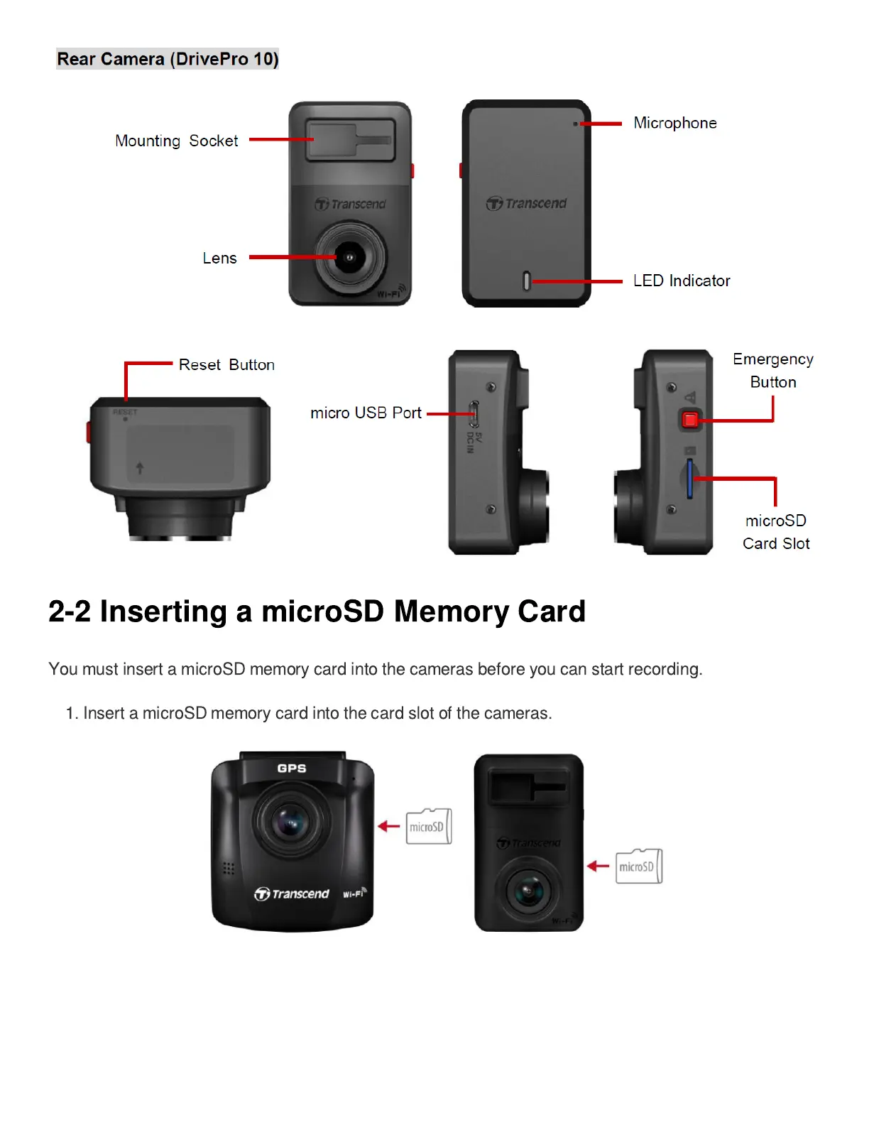 Transcend DrivePro 620 - 2-2 Inserting a microSD Memory Card