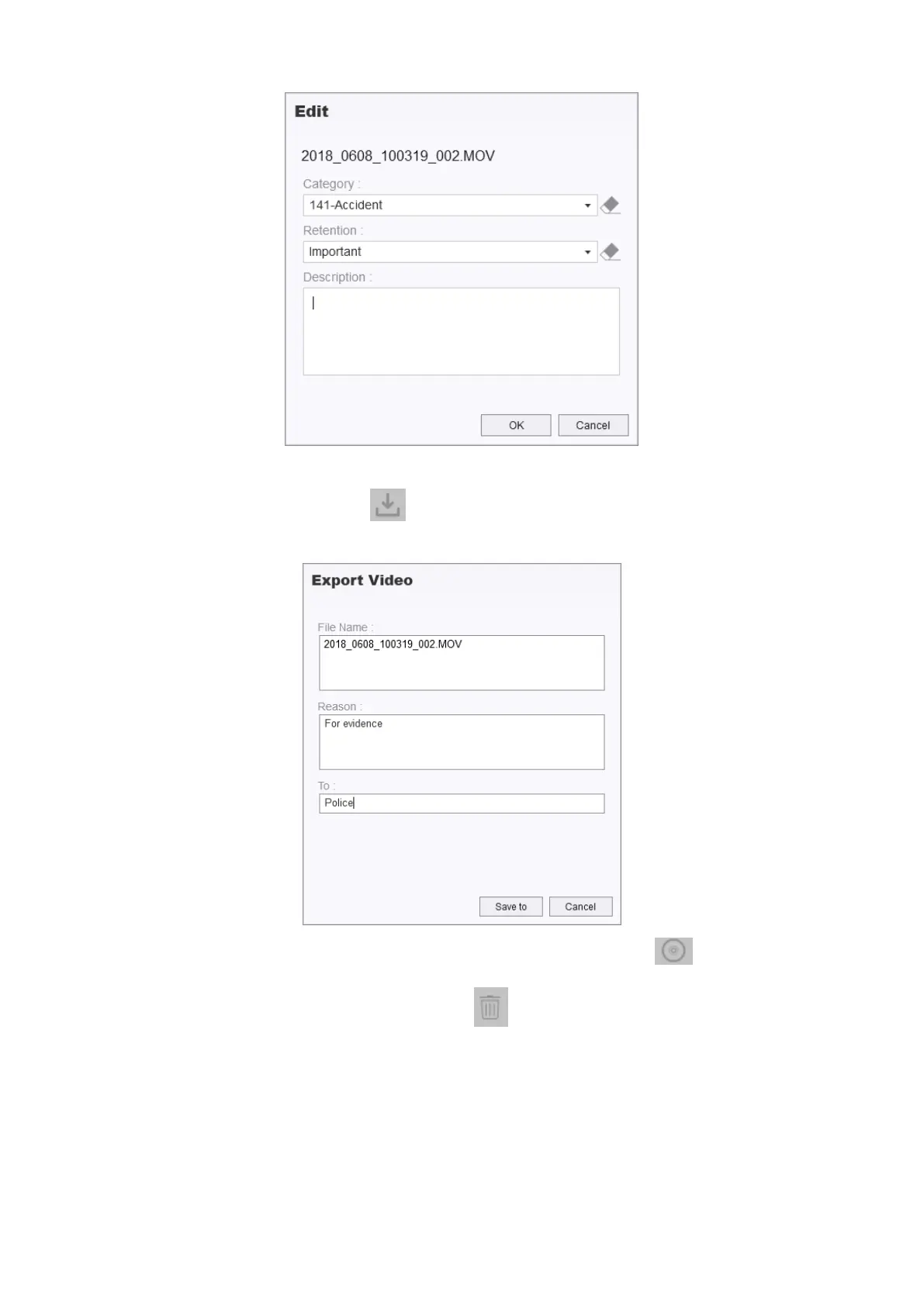 To download a video, click on the icon, and click on “Save to” to export the video to a