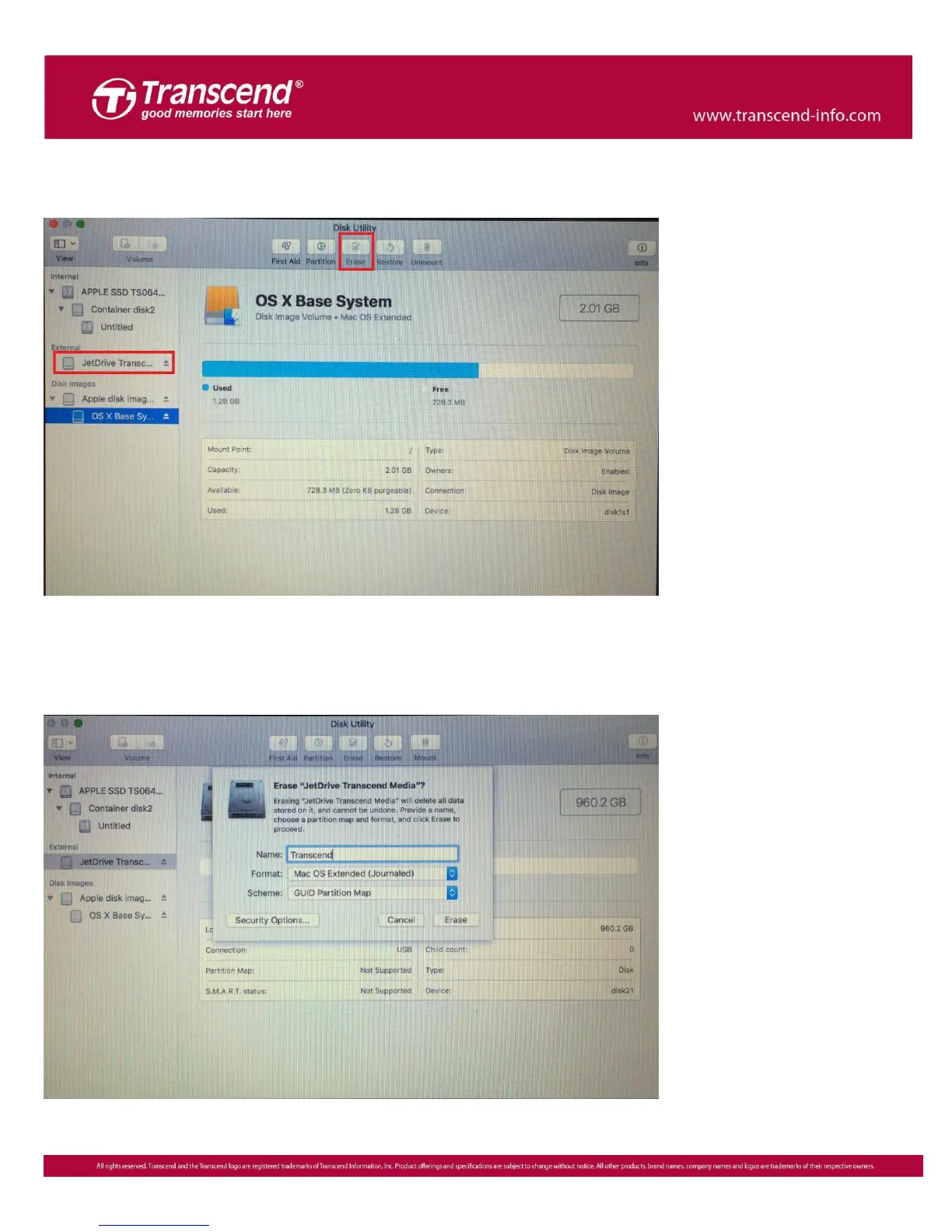 Select JetDrive Transcend from the sidebar and click the Erase tab.