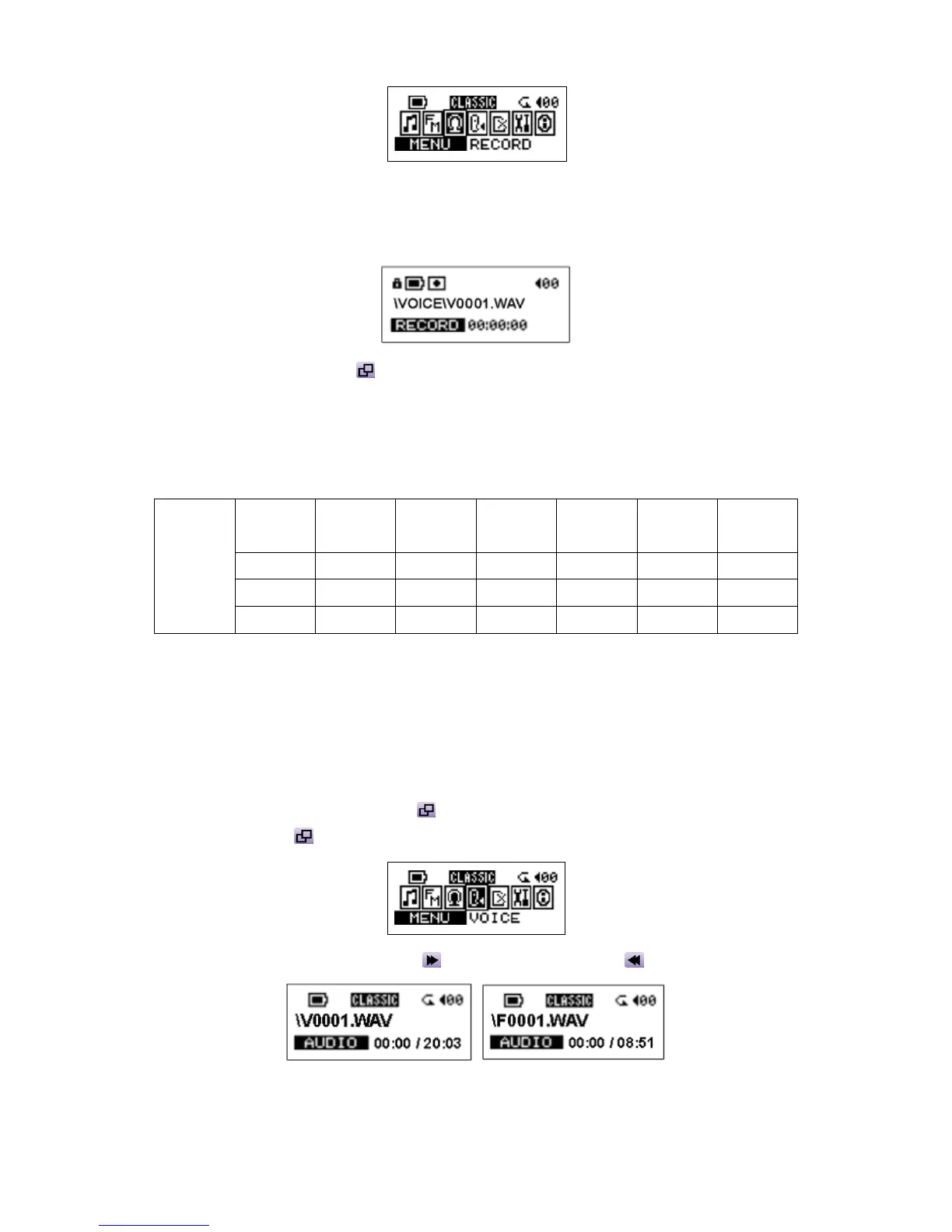 2. On the LCD Display, a recording file is generated and placed under the folder of [ \VOICE\ ].